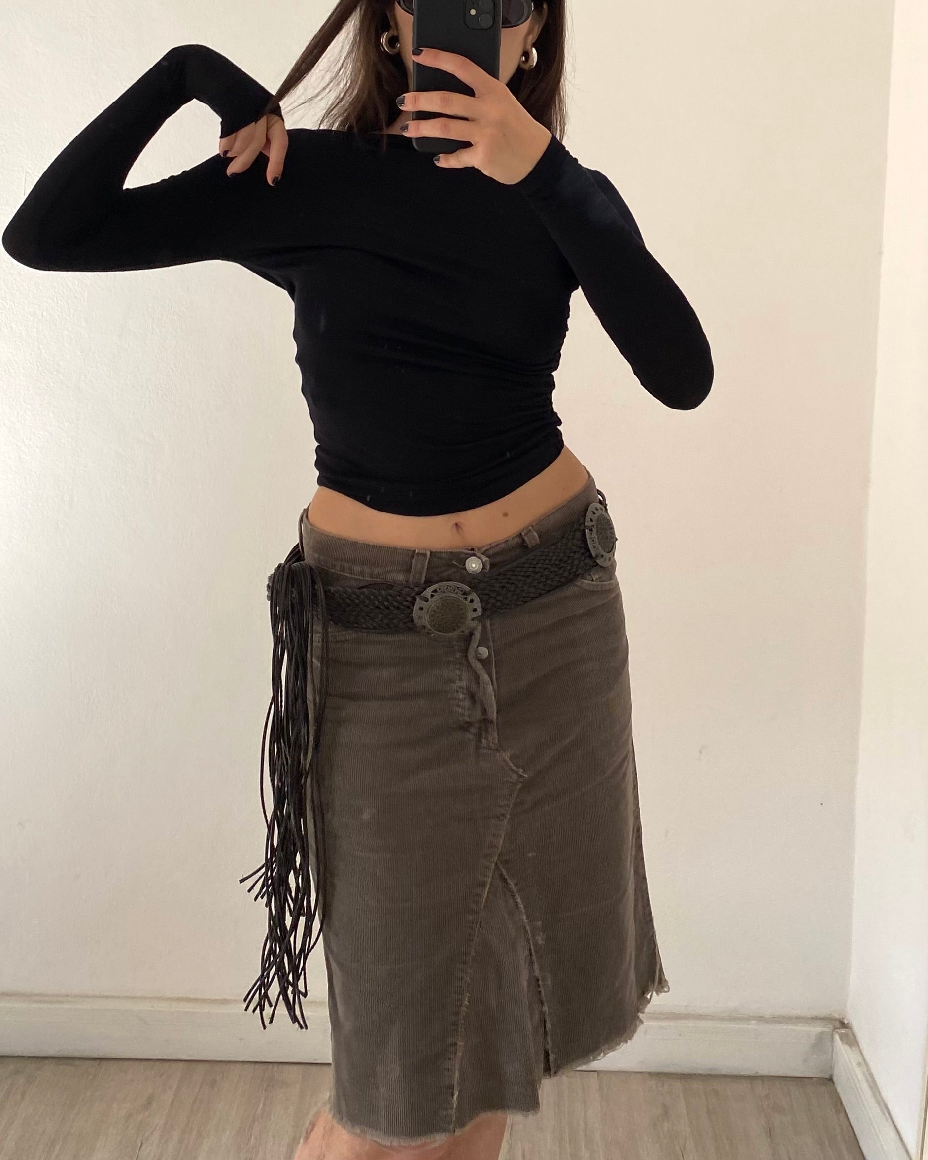 Gonna midi Levi's a costine, vita media, chiusura 5 bottoni, logo sul retro.