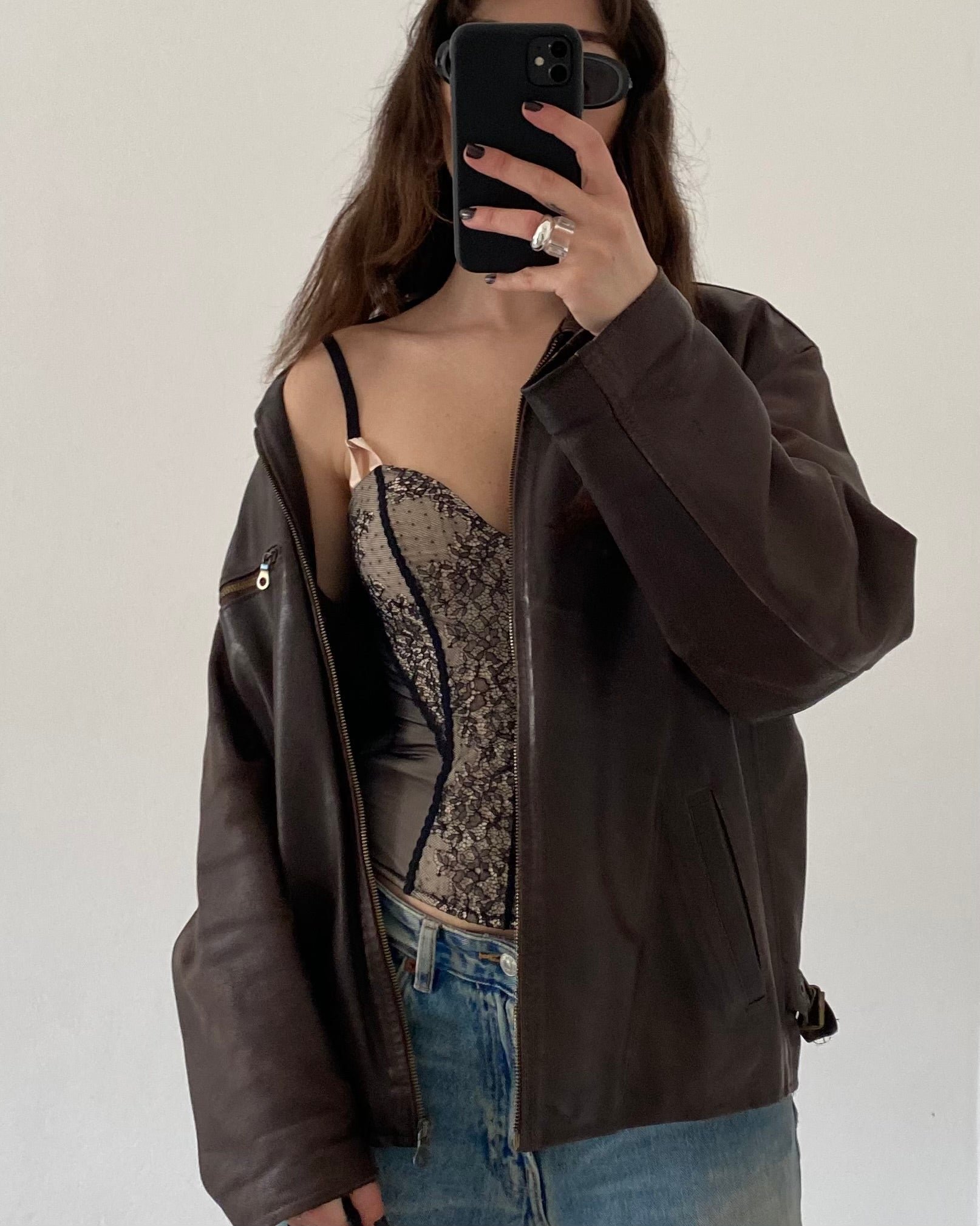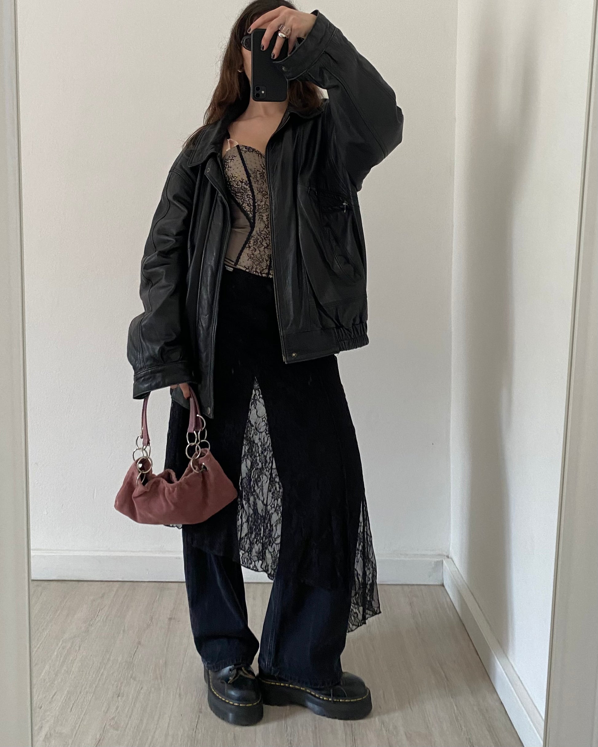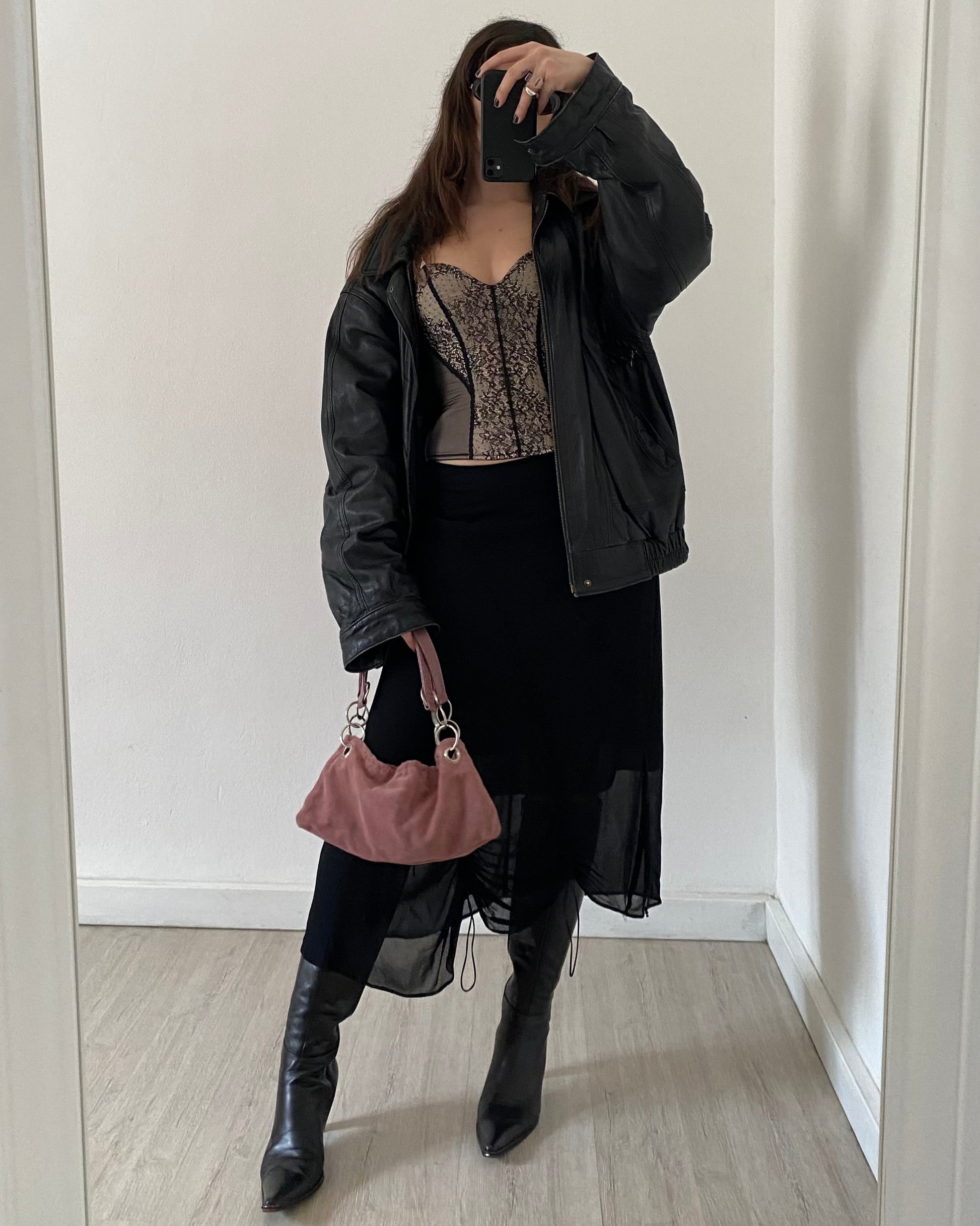 Corsetto primi anni 2000 in pizzo doppio strato con coppe sagomate, elementi a contrasto rosa cripria, spalline regolabili e set di gancetti sul retro per regolare il busto, fit strutturato, tessuto spesso e sagomato ma morbido.