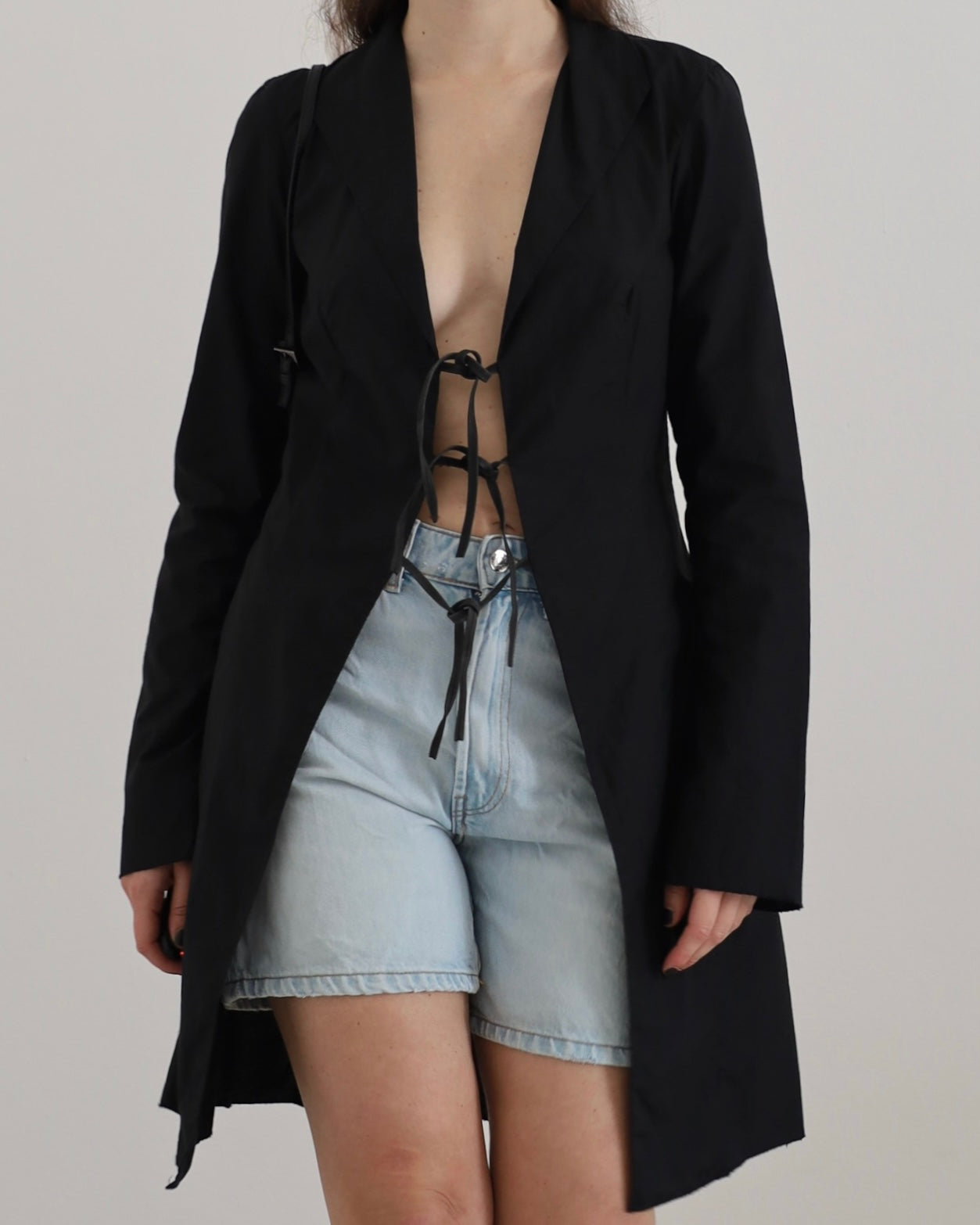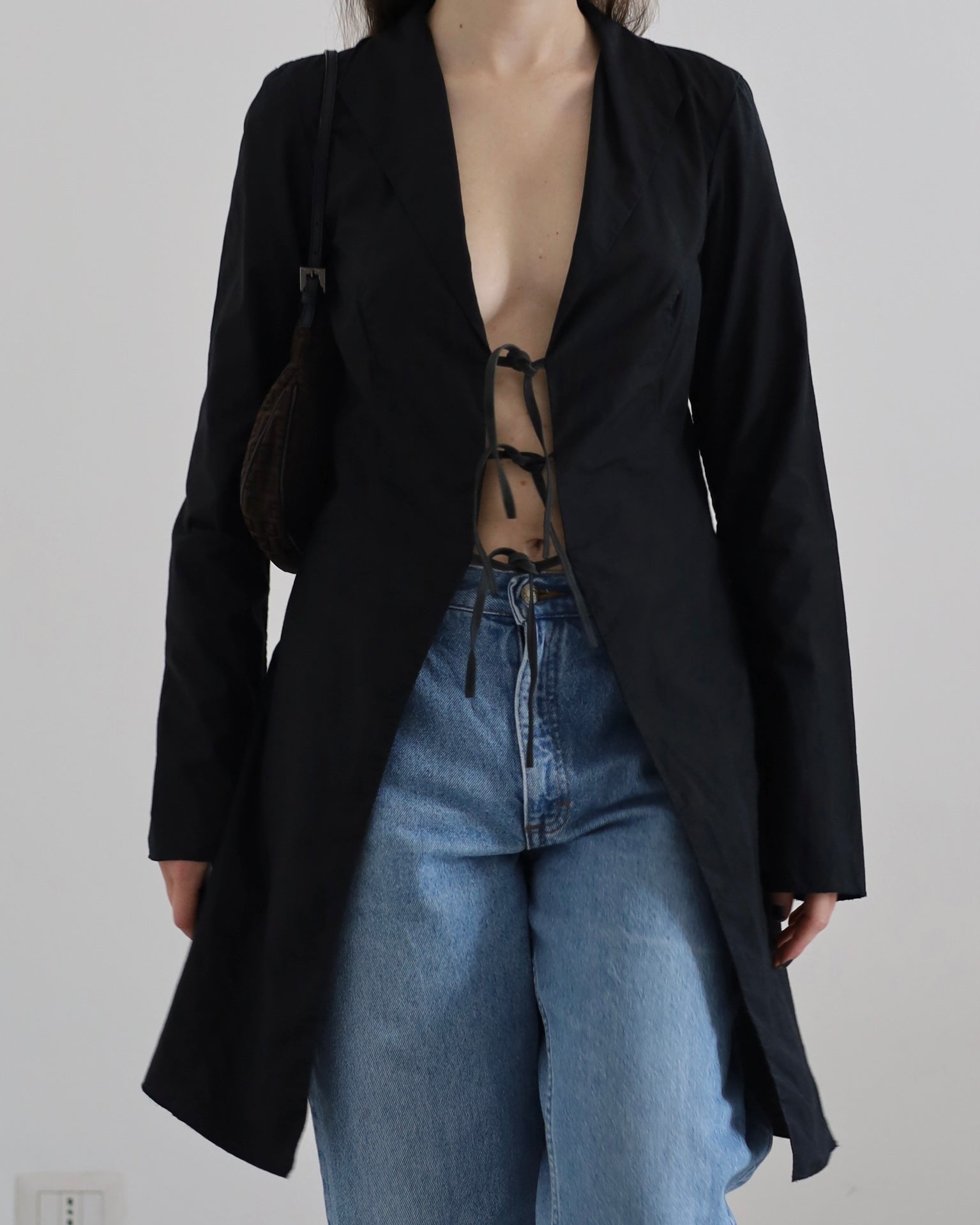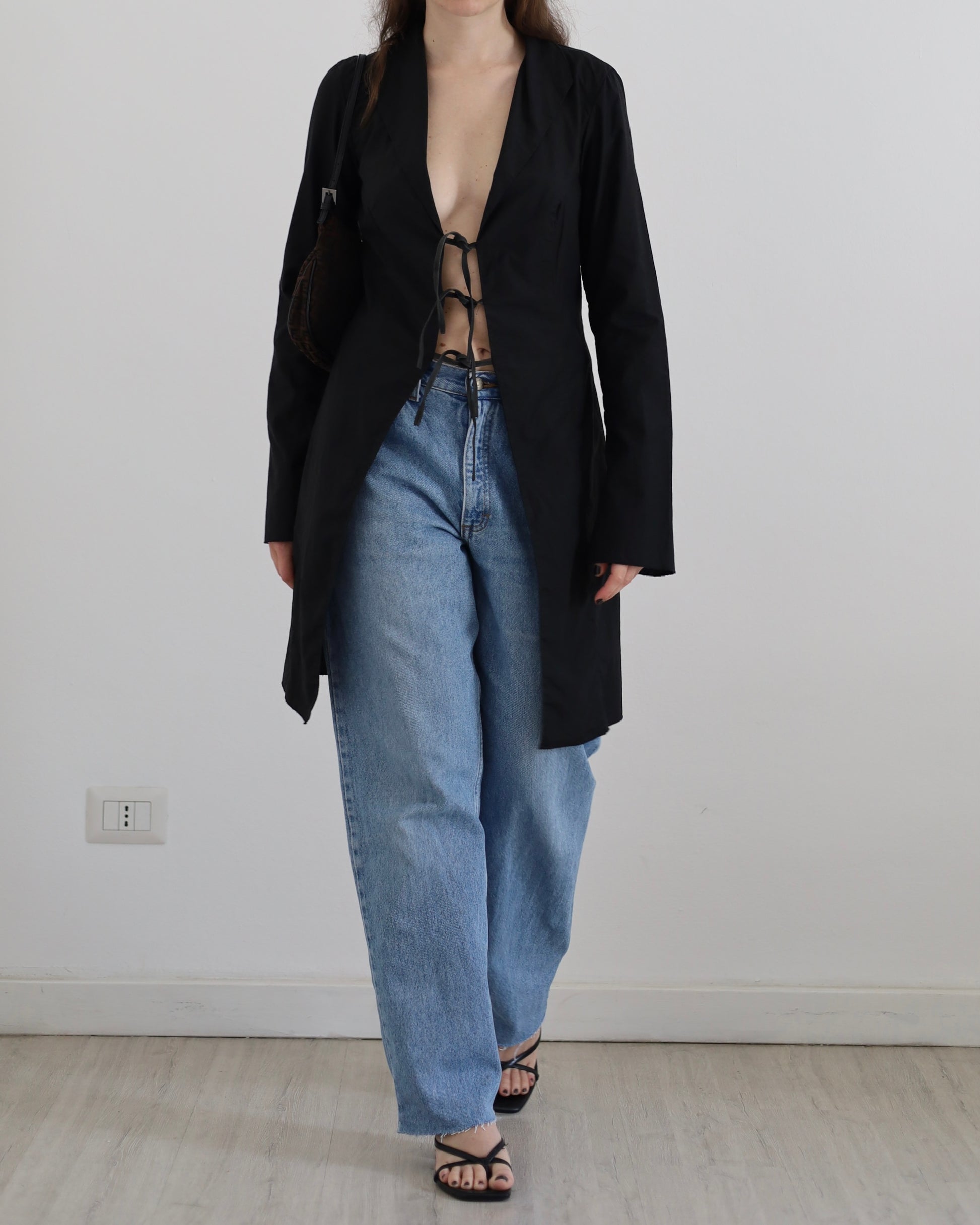 Insane early 00s vintage long shirt top with adjustable ties on the front from the iconic brand Gas, structured fit, lightweight fabric, perfect for layering or wearing on its own.
