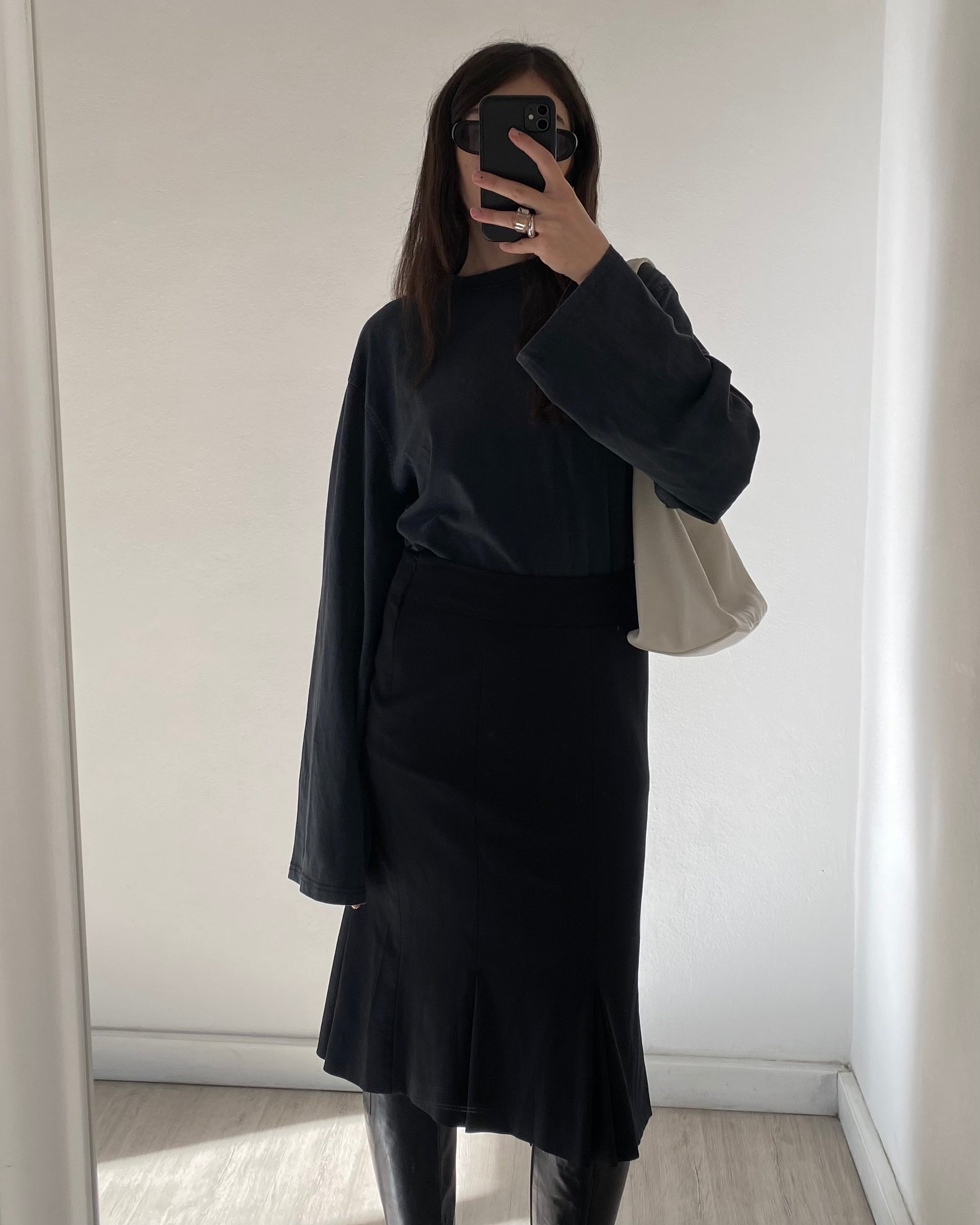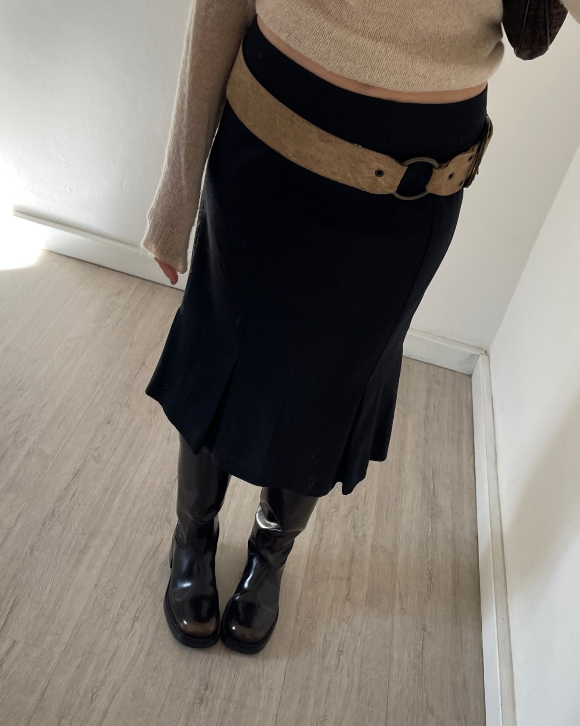 Meravigliosa gonna midi Max Mara in lana, vita media, chiusura con zip, taglio dritto leggermente scampanato. La vestibilità, il taglio e la qualità del tessuto sono veramente eccezionali, capo essenziale e senza tempo che sta bene con tutto! Spessore della lana sottile che la rende calda, ma anche comoda e versatile.