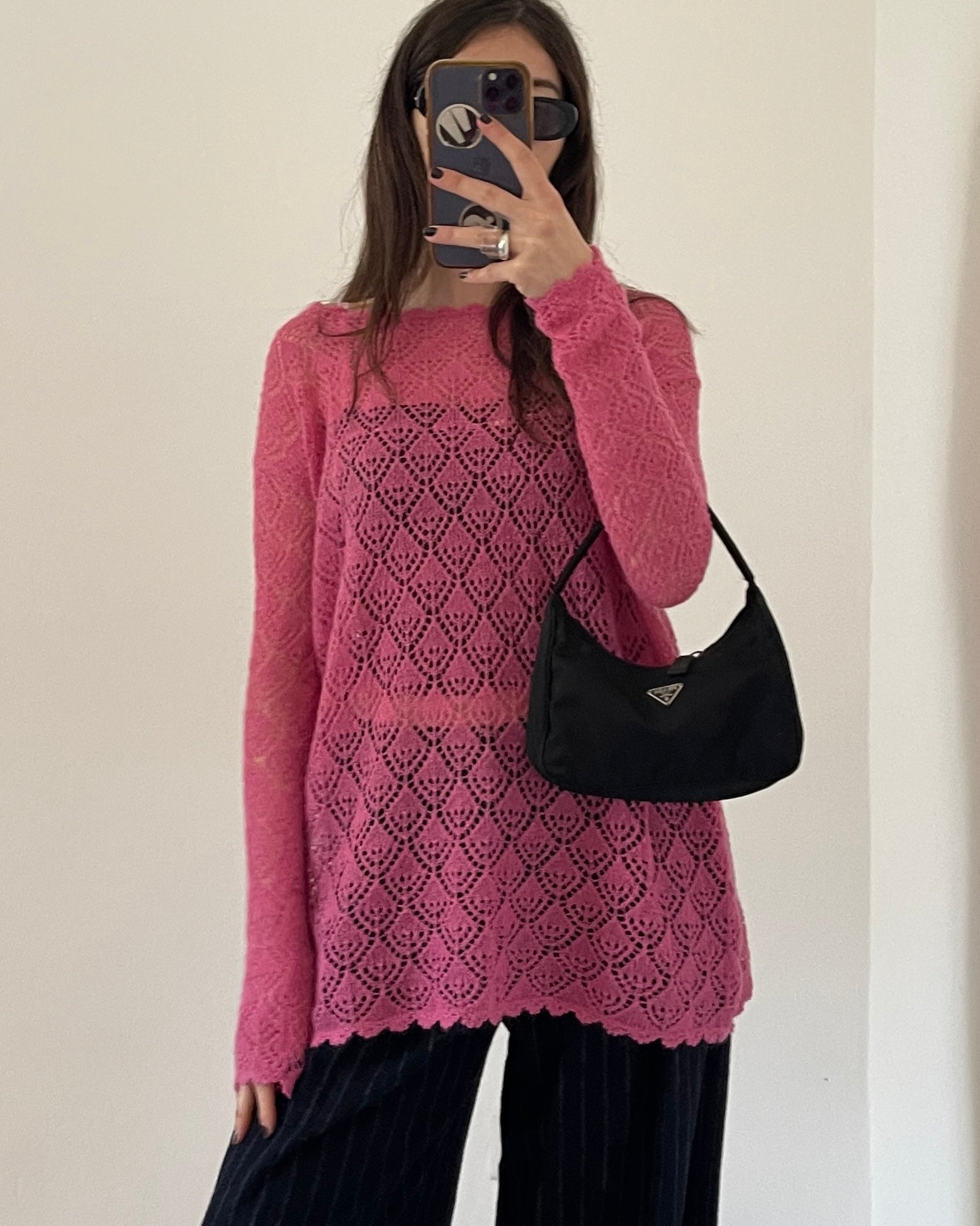 Maglioncino traforato in misto mohair della collezione Scee (by Twin-set), trama lavorata, taglio lungo leggermente svasato, morbidissimo.