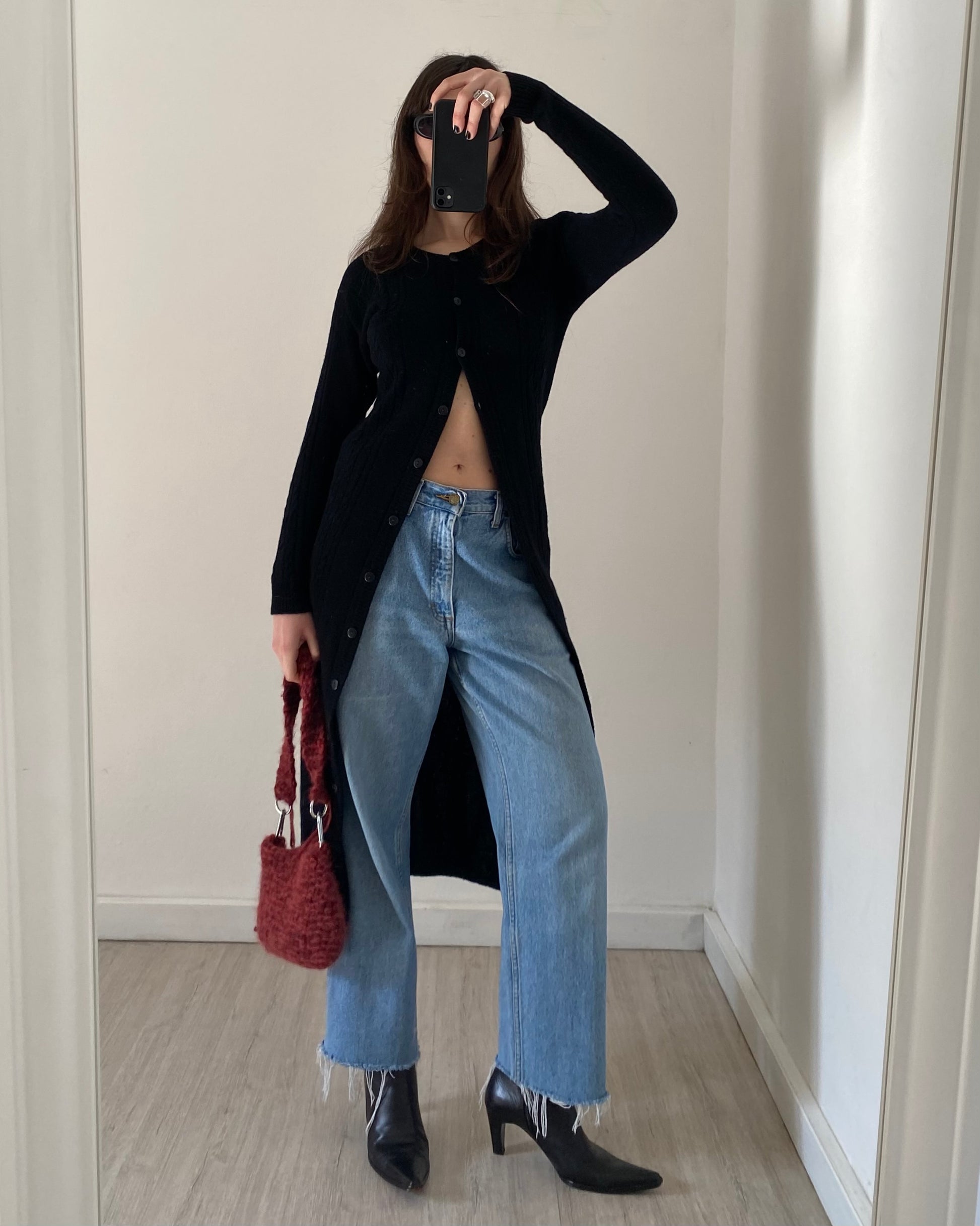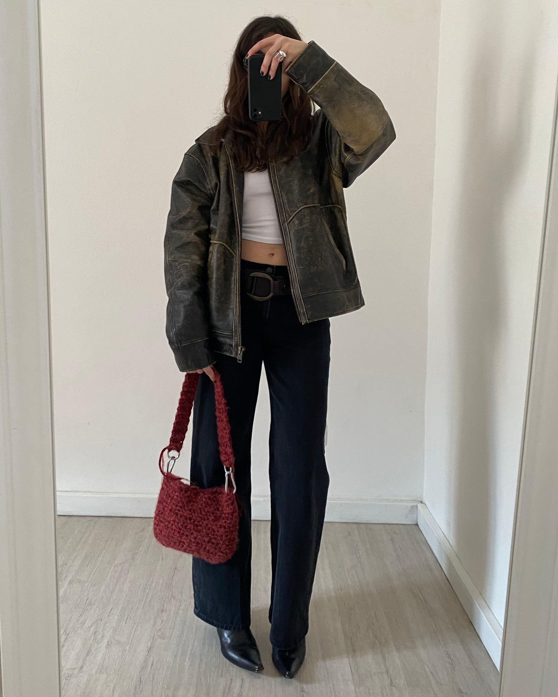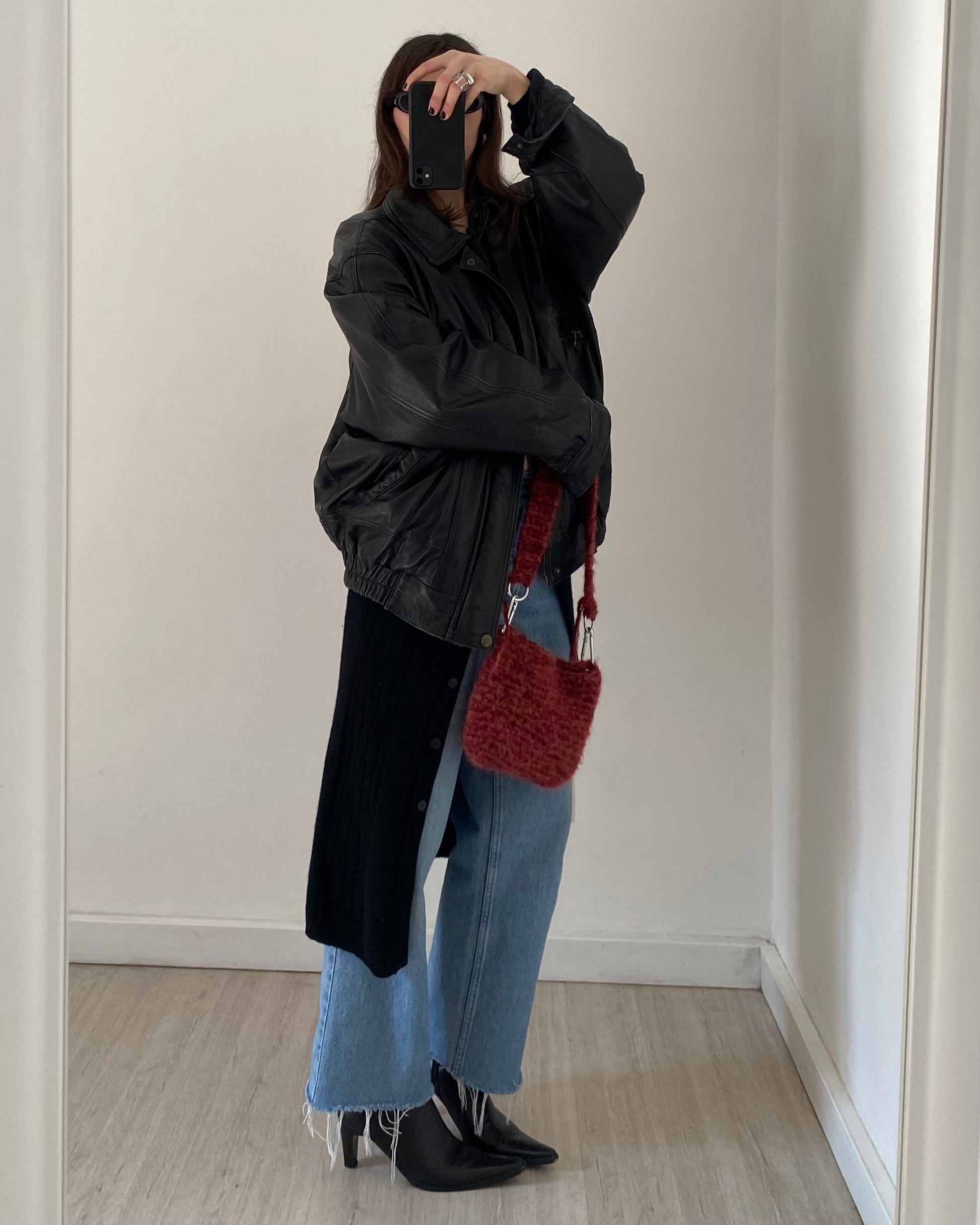 Borsina realizzata a mano in misto lana, chiusura con bottone automatico, dettagli in metallo argentati. I moschettoni sono rimovibili, in modo tale da poter accorciare il manico o semplicemente cambiare look, si può indossare sia a spalla che a mano <3