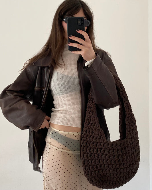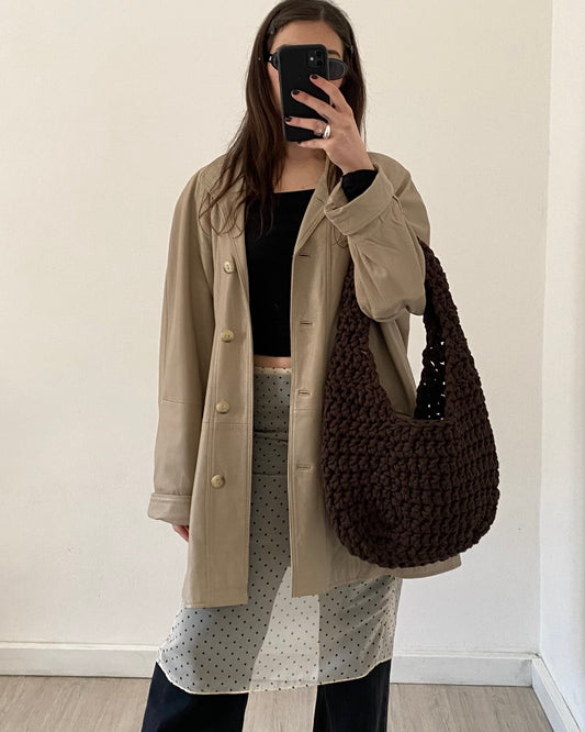 Brown long faux fur coat