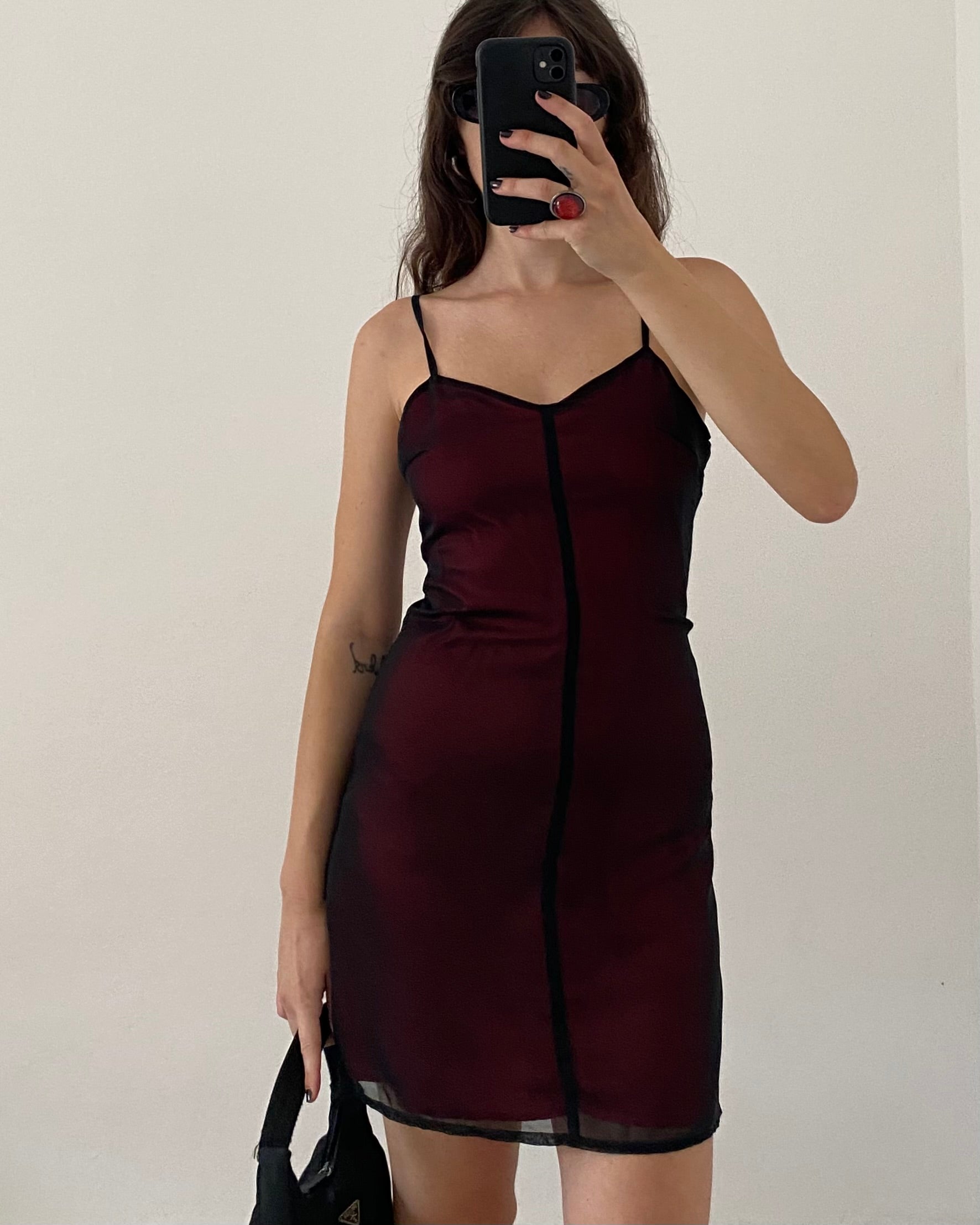 Meraviglioso abito corto primi anni 2000 in chiffon trasparente con doppio strato by united colours of benetton, zip sul retro, taglio svasato, spalline sottili (regolabili).