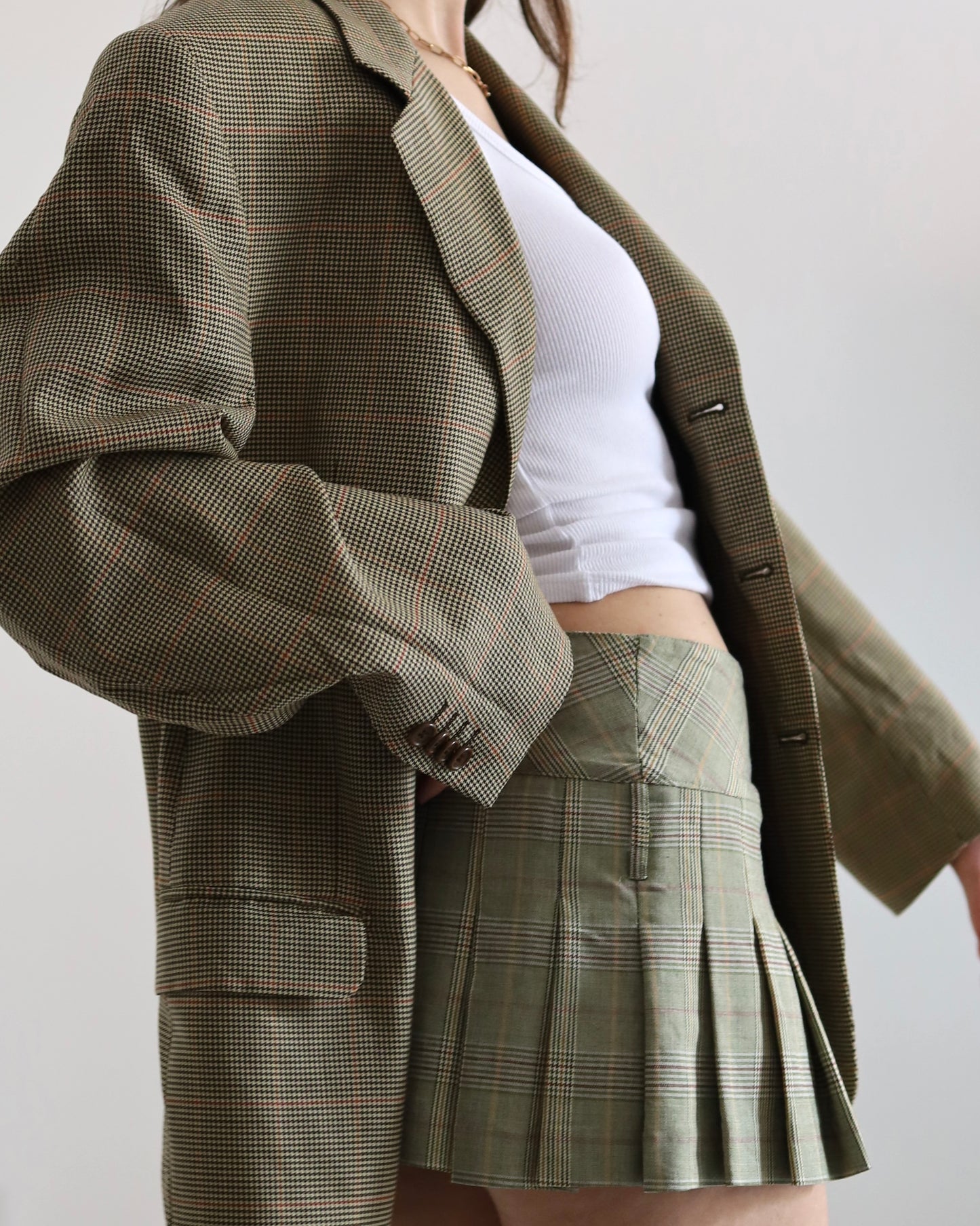Blazer vintage sartoriale a quadretti in fresco lana super 120, un filato della lana pregiato e leggero, perfetto per la primavera! Fit strutturato, fodera in cupro, qualità eccellente (realizzato dalla sartoria Massacri). Taglia riportata 48(M maschile), veste S-M in base al fit desiderato (over/regolare). Indossata in foto da una S 1,68m.