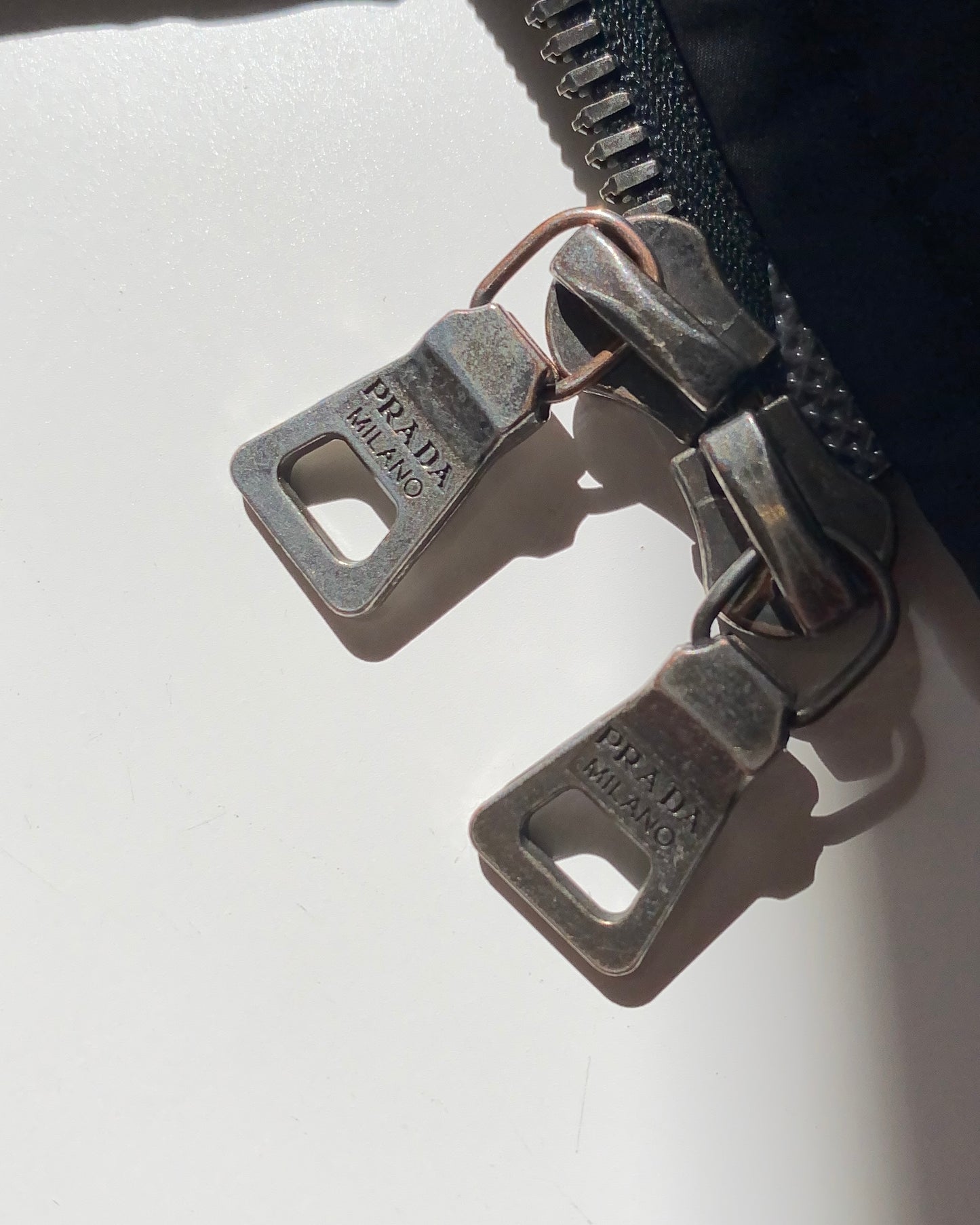 Insane Prada black nylon jacket with fur lining, double zip that can be adjusted different ways,logo at the back.