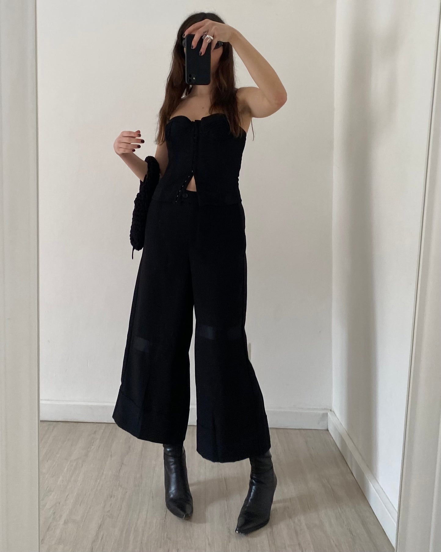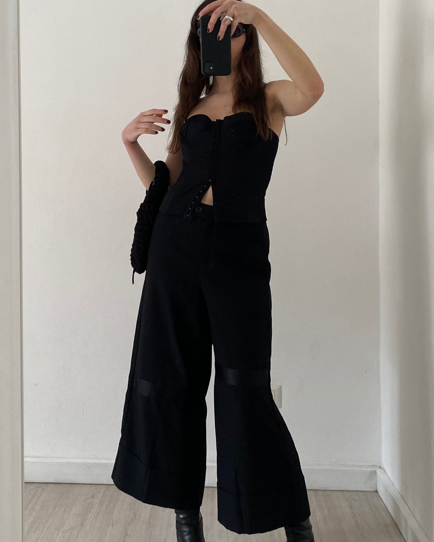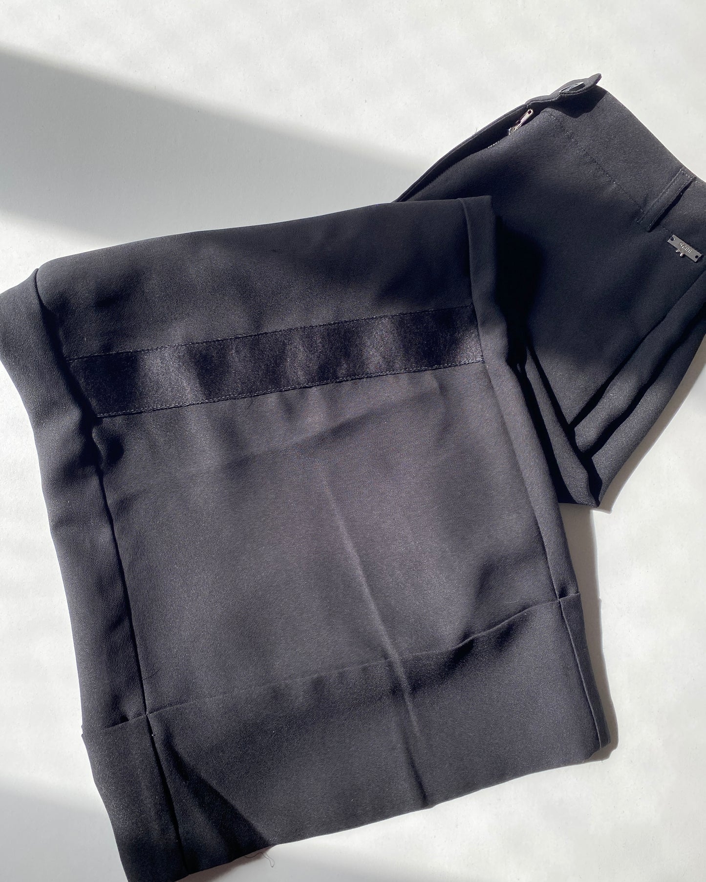 Meravigliosi pantaloni culottes della collezione Scee (twin-set by Simona Barbieri), vita media, lunghezza crop, gamba ampia con strisce in raso. Bellissimi, comodi e perfetti da mattina a sera.