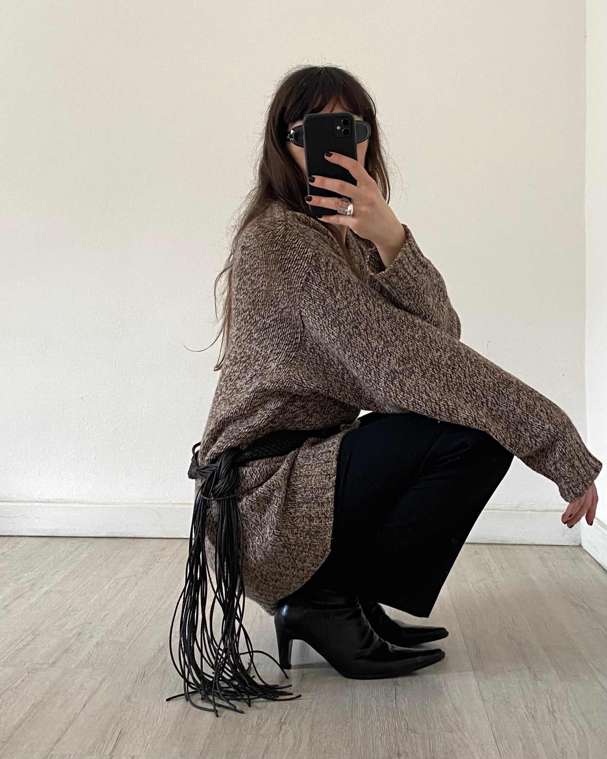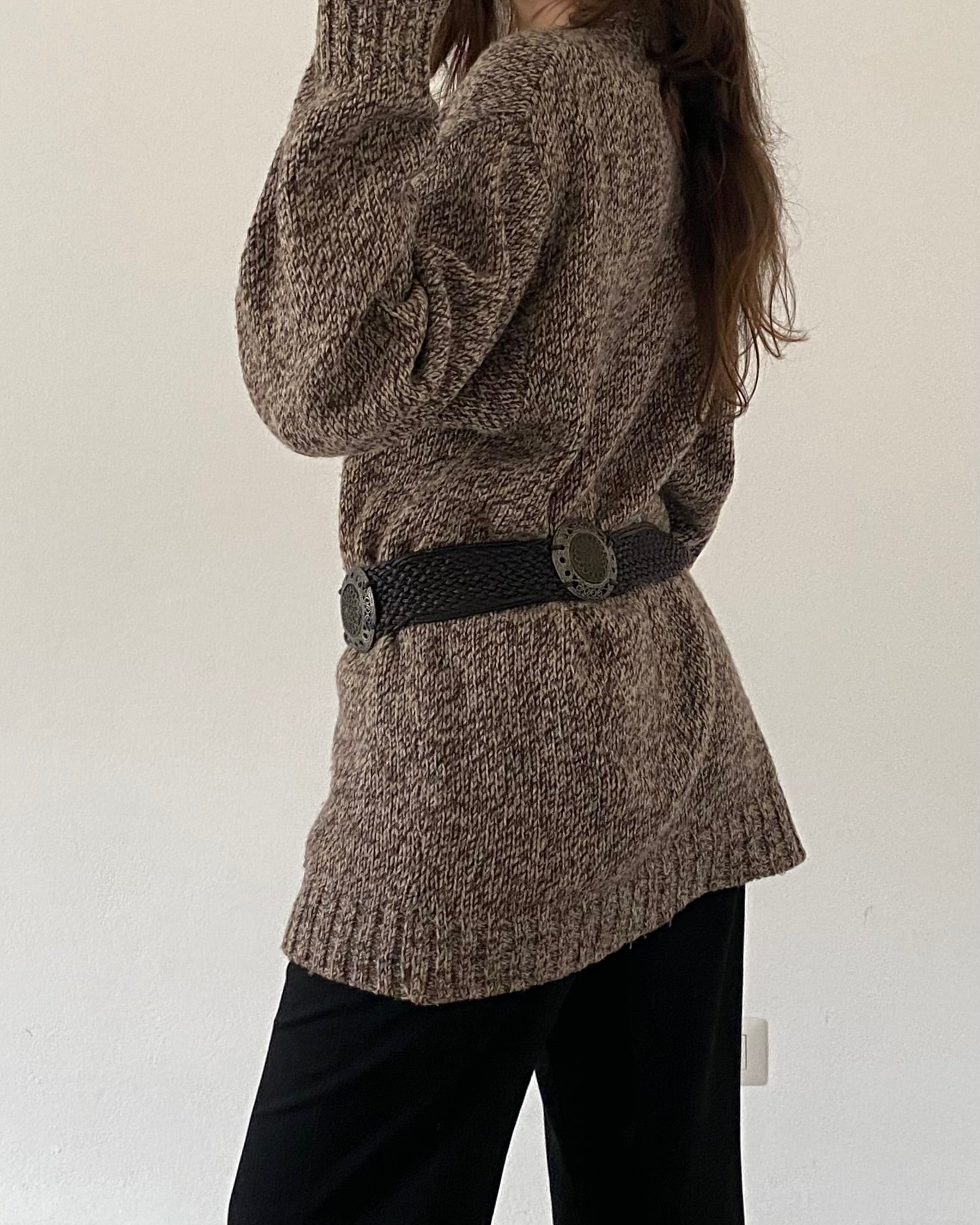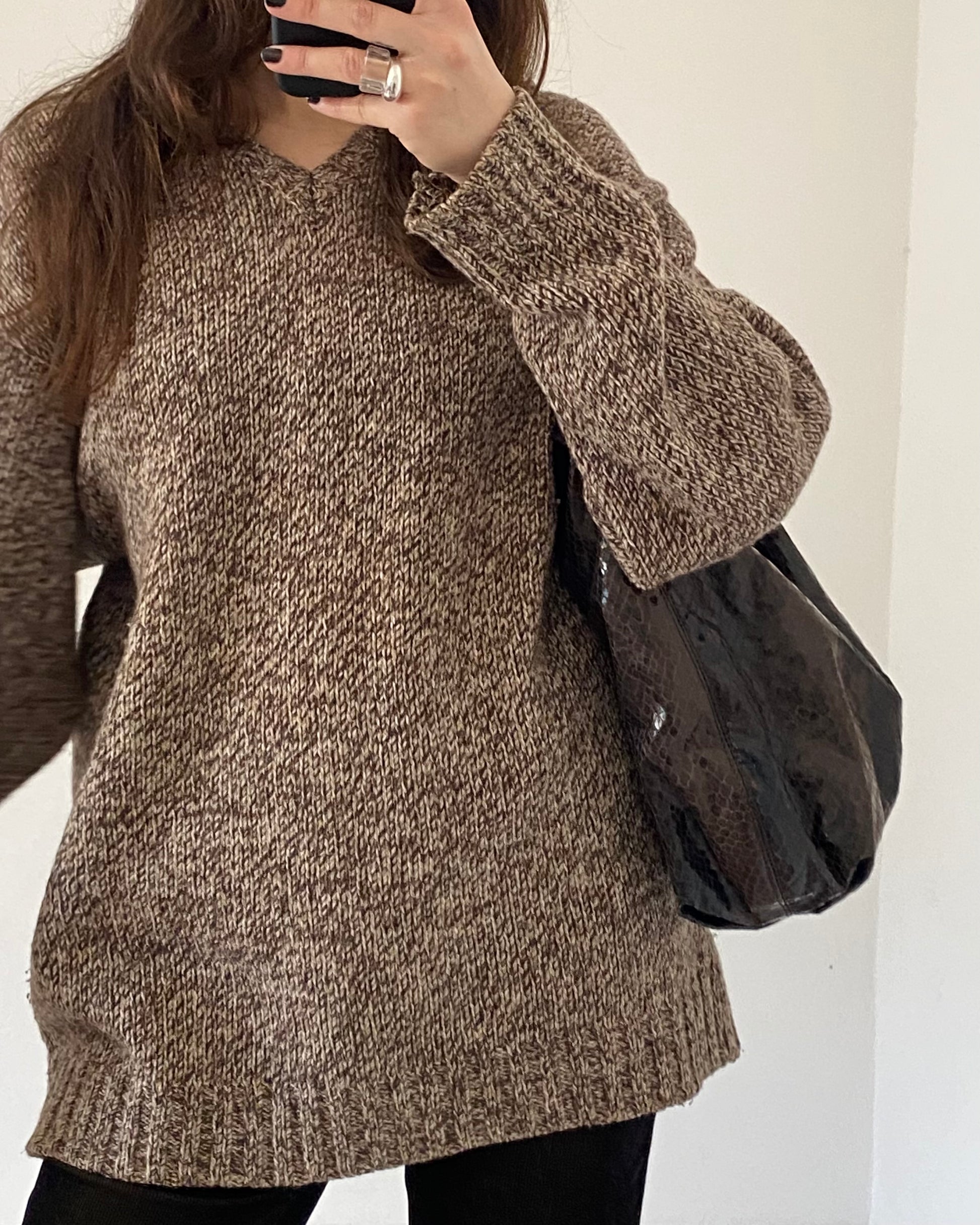 Vintage speckled wool mix knitted jumper with v-neck by Rifle, excellent quality.