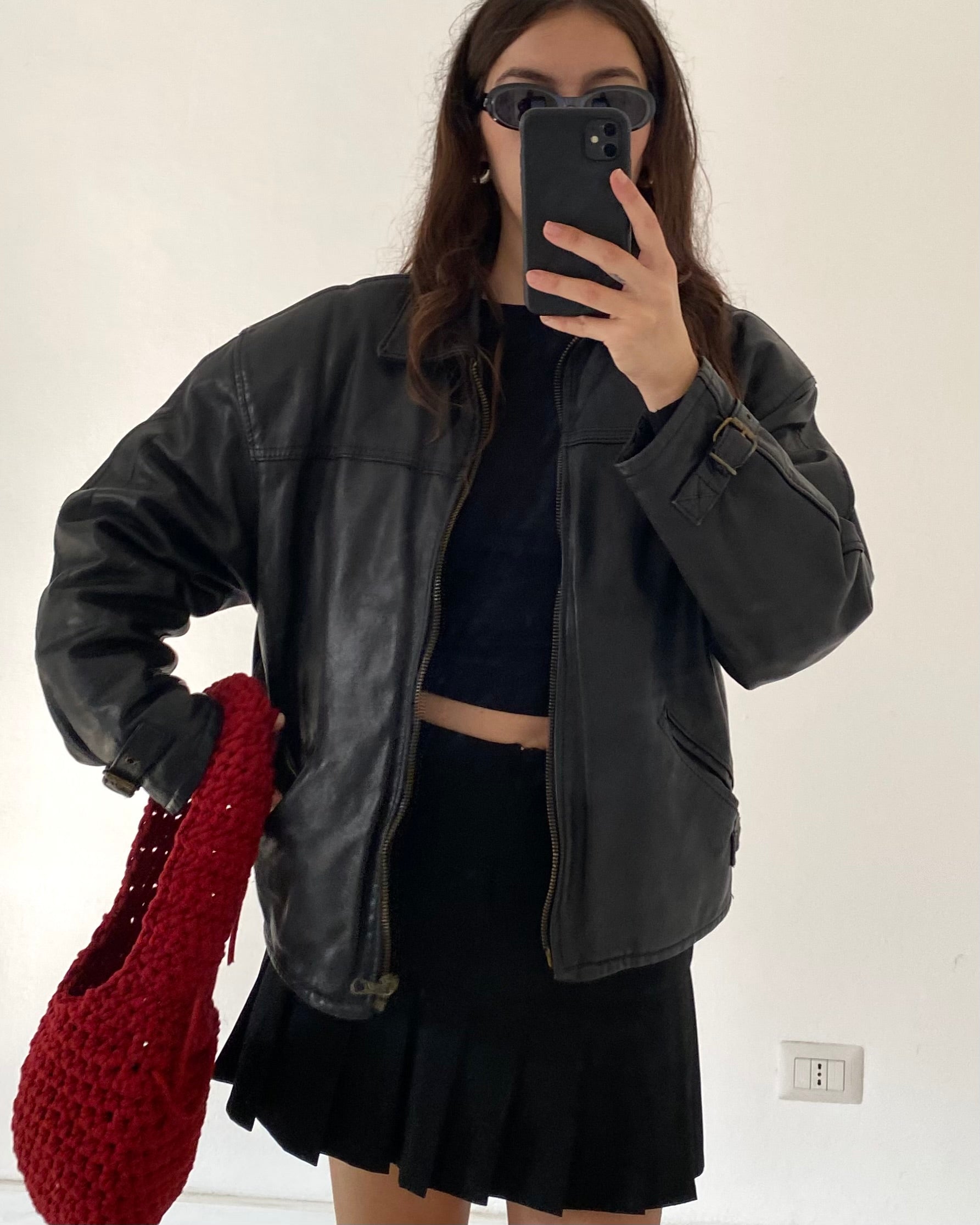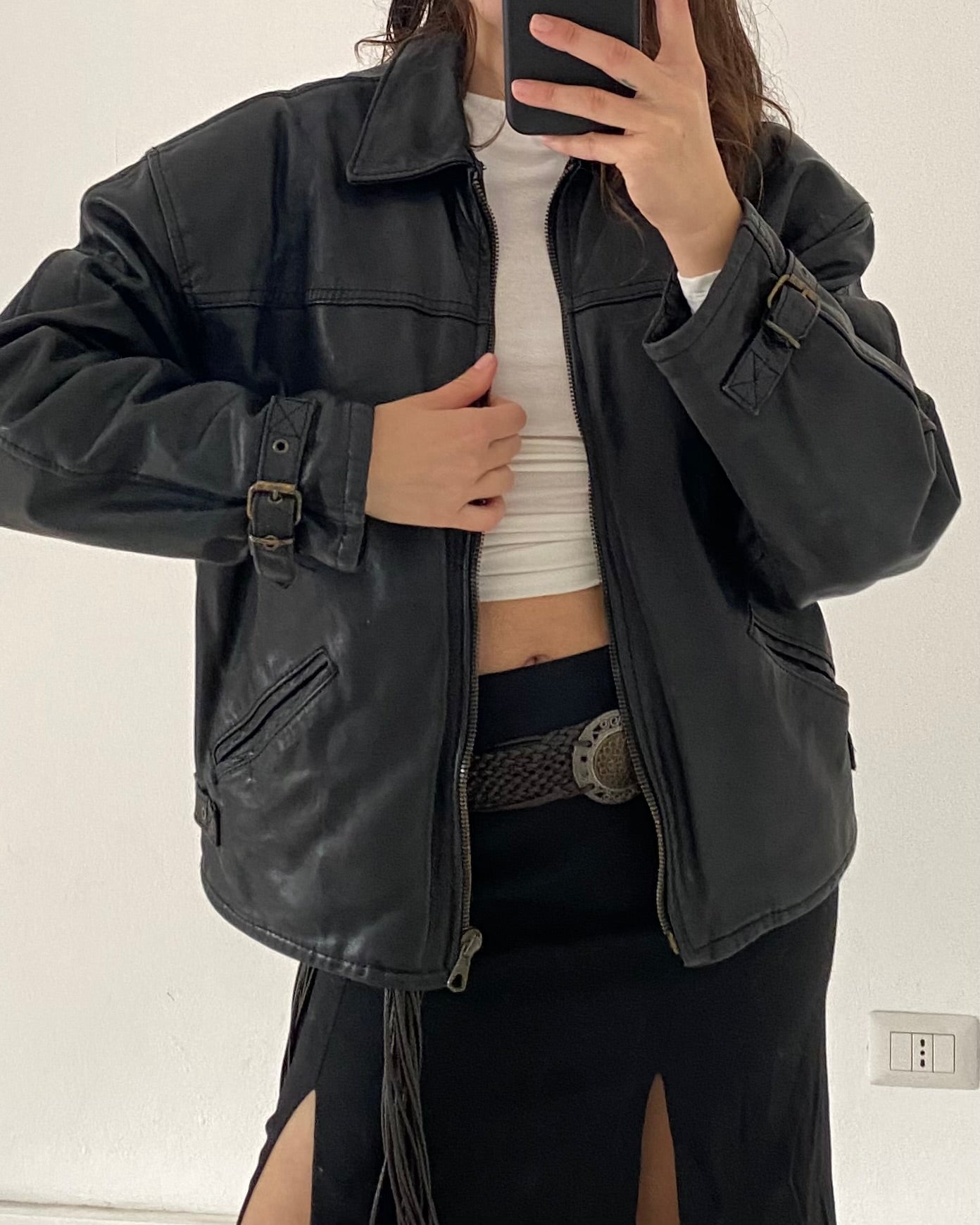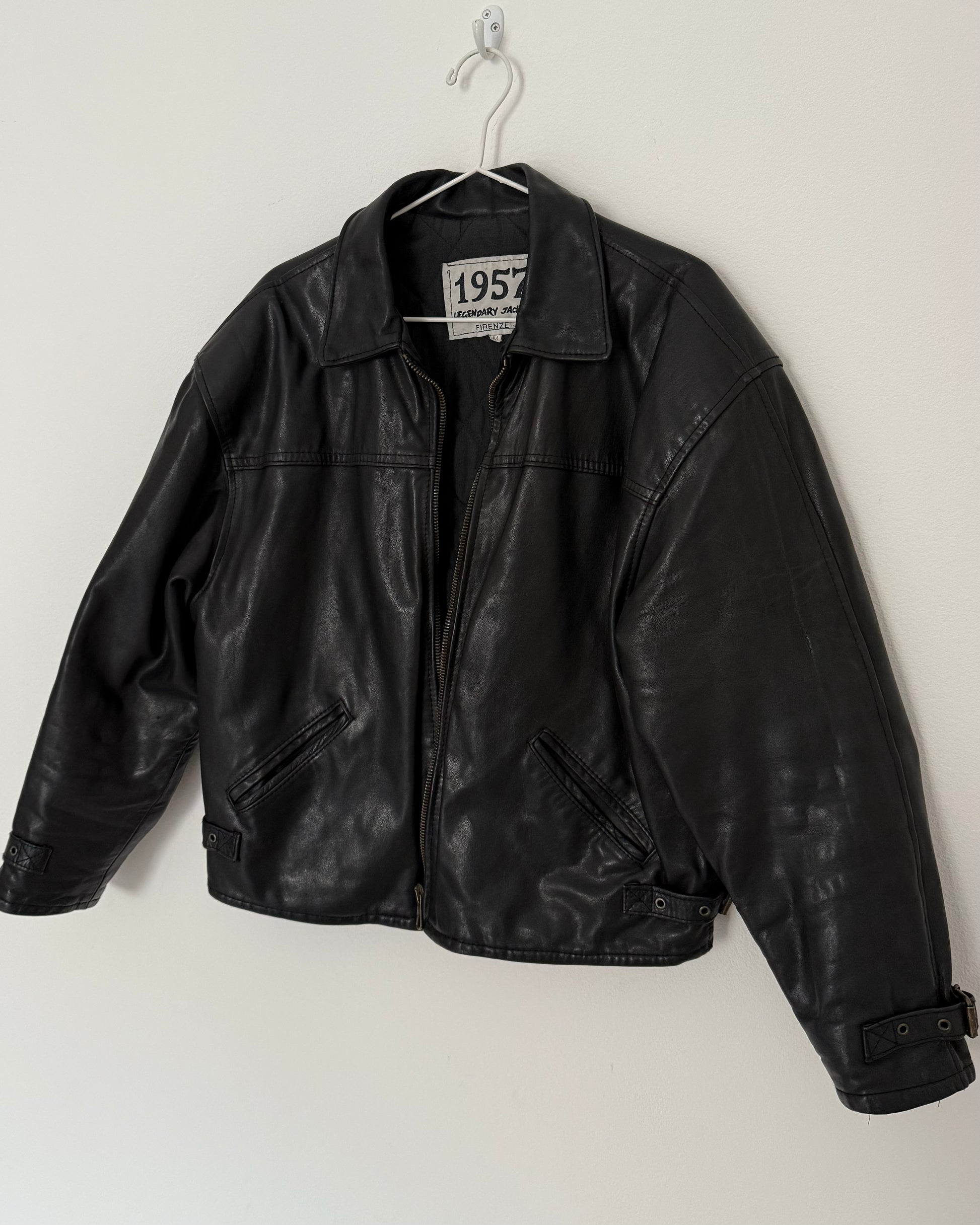 Meravigliosa giacca bomber vintage anni 90 in vera pelle, fodera interna trapuntata, tasche laterali e tasca interna, chiusura con zip. Lavorazione artigiana. Condizioni pari al nuovo.