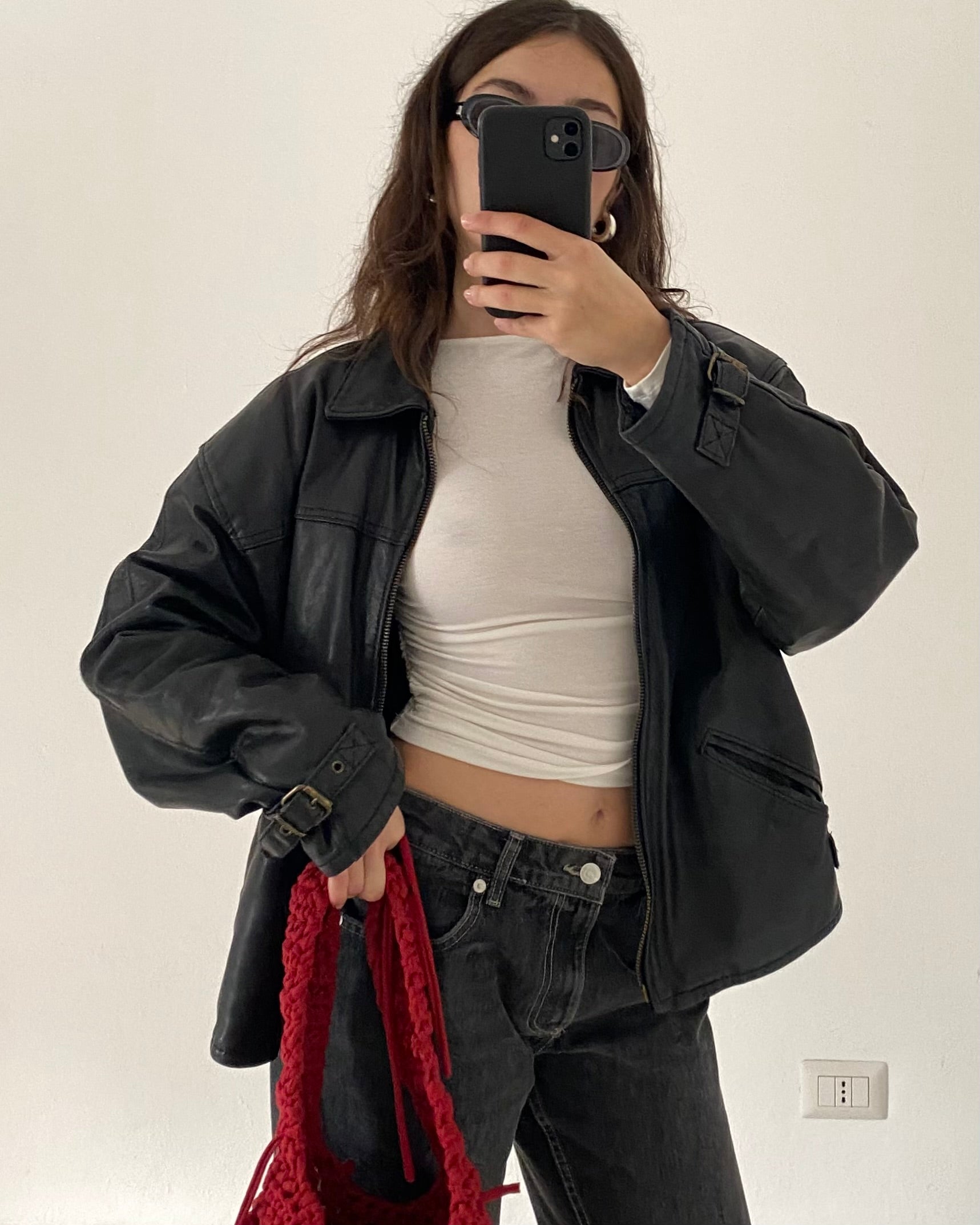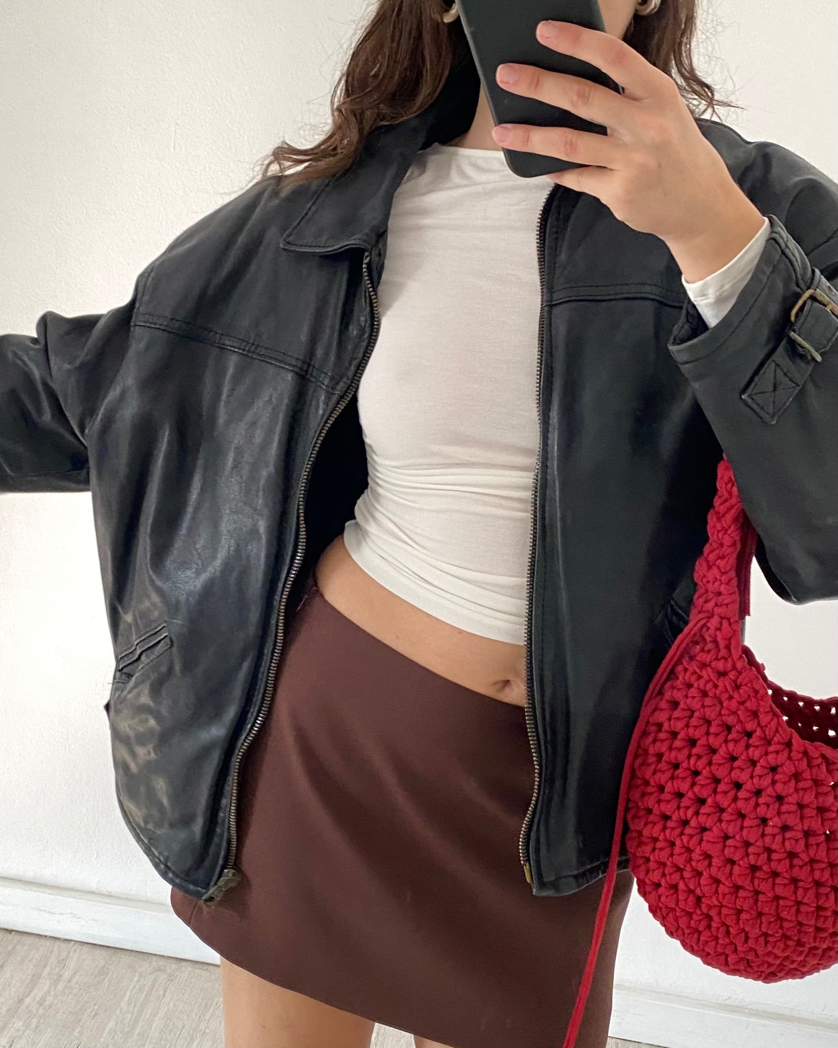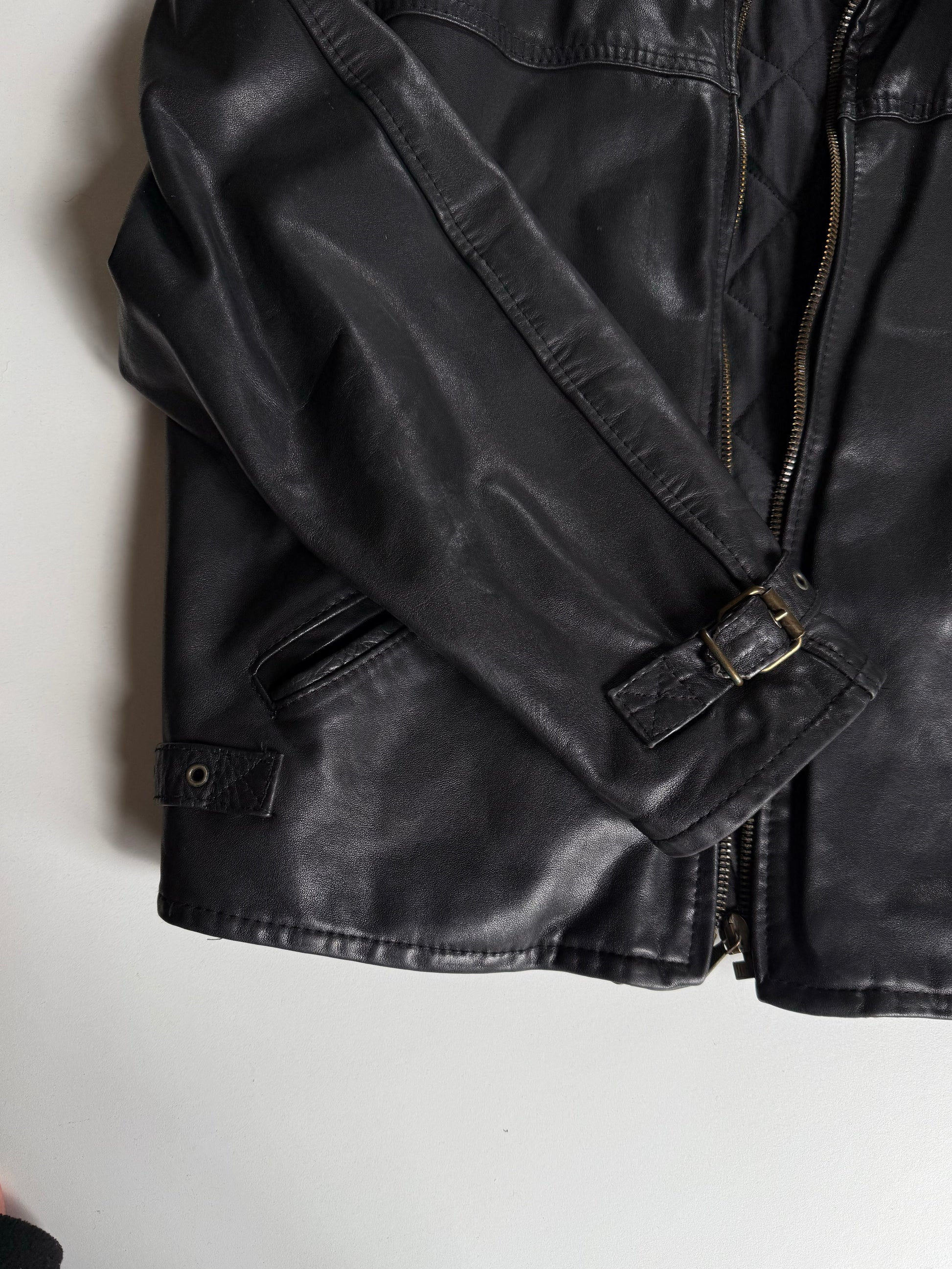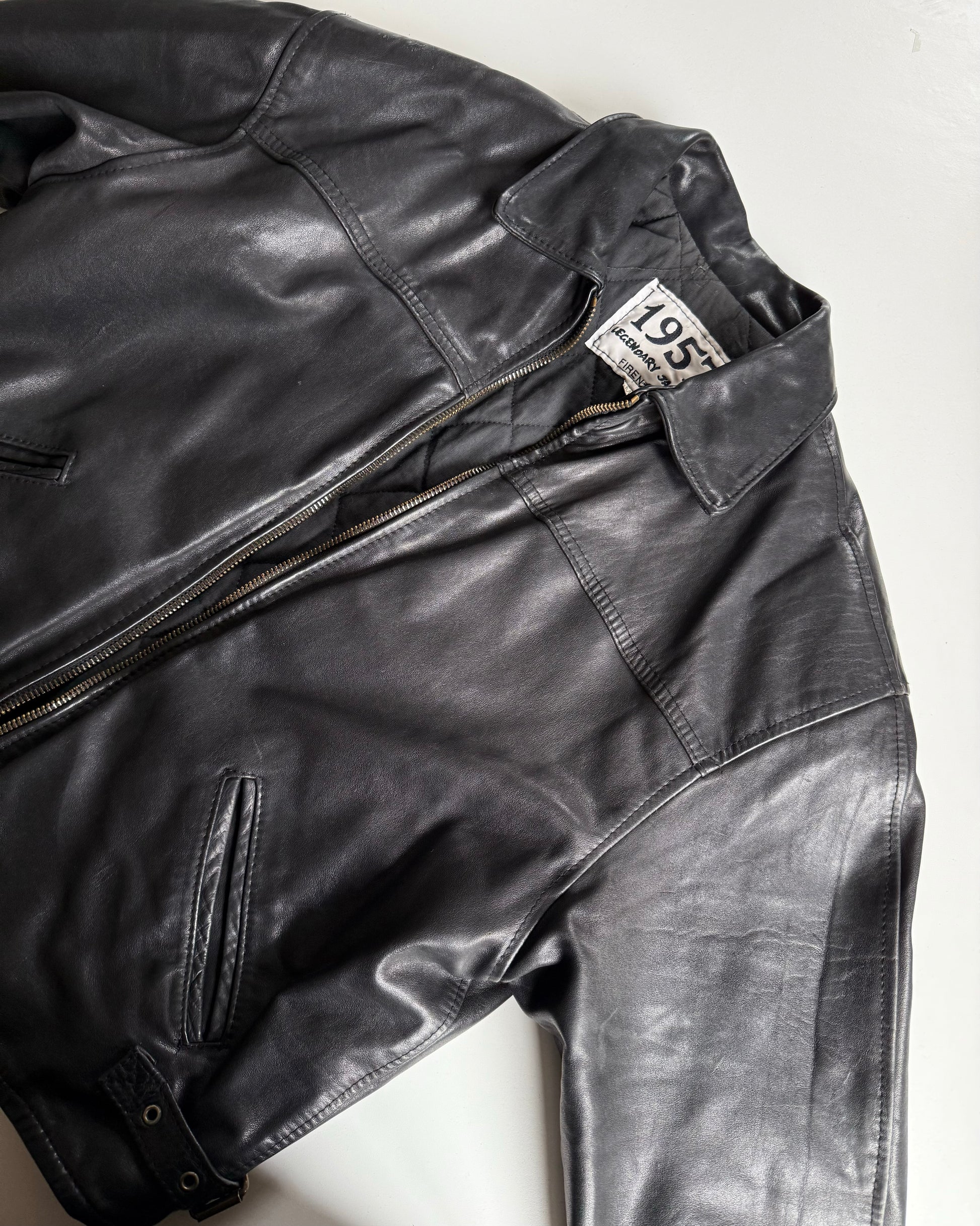 Meravigliosa giacca bomber vintage anni 90 in vera pelle, fodera interna trapuntata, tasche laterali e tasca interna, chiusura con zip. Lavorazione artigiana. Condizioni pari al nuovo.