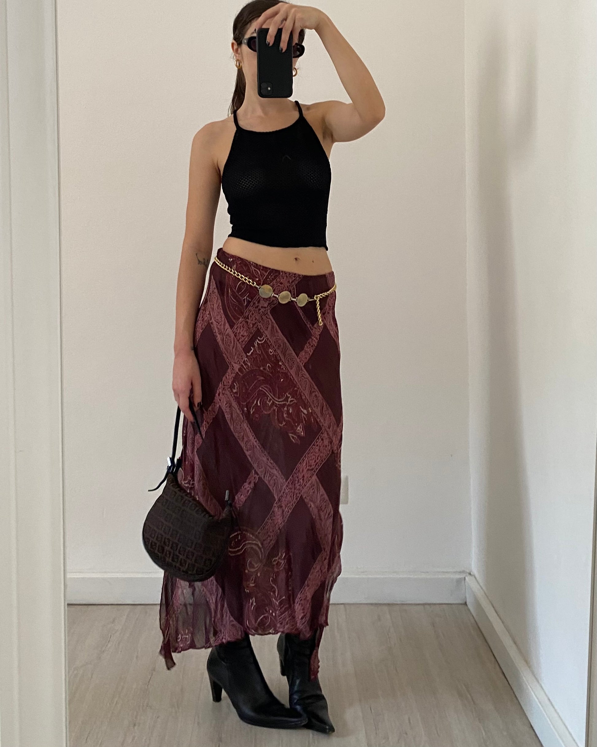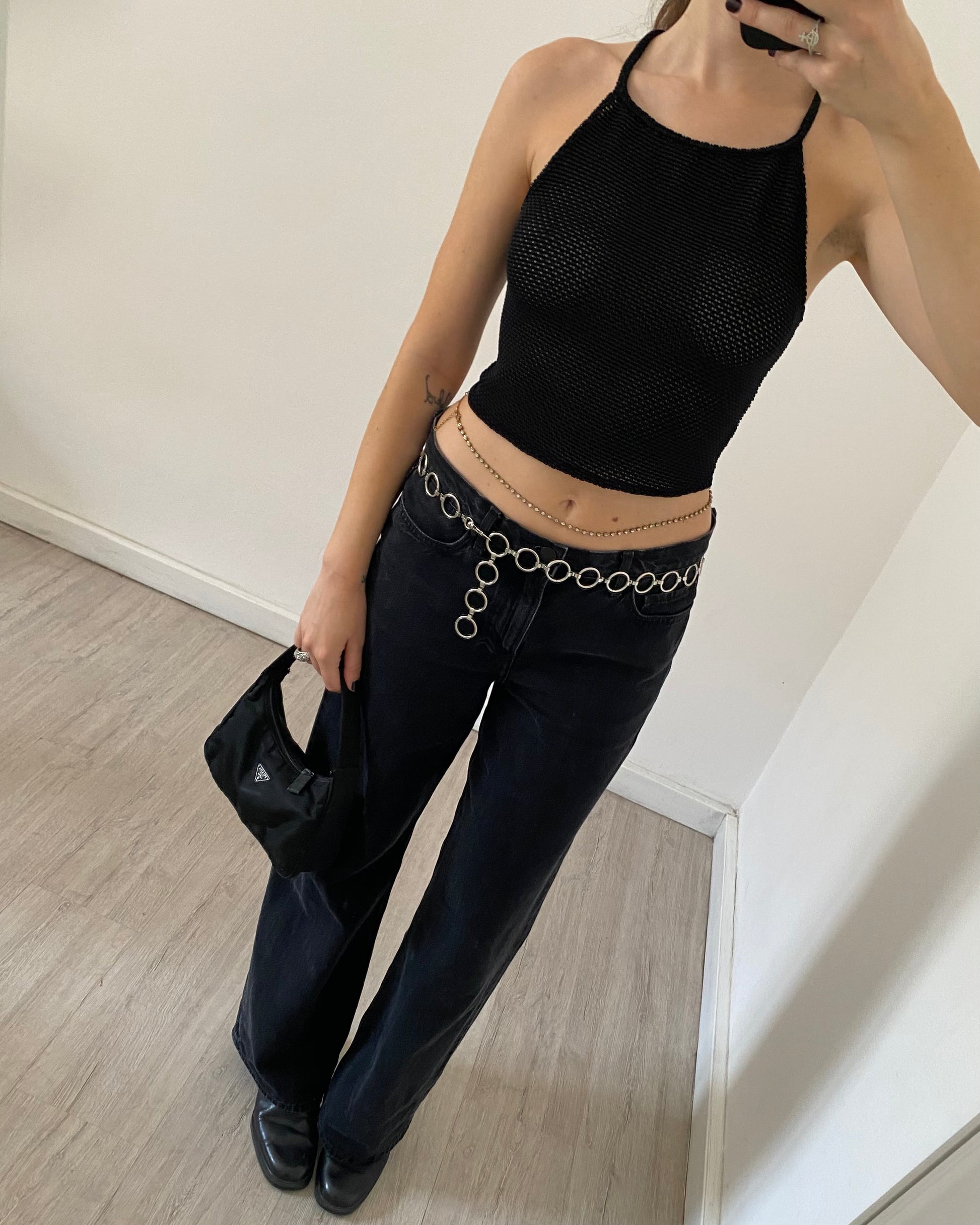 Top primi anni 2000 in micro rete con scollo halter, tessuto stretch vedo-non vedo, ottima qualità (designer fiorentino).