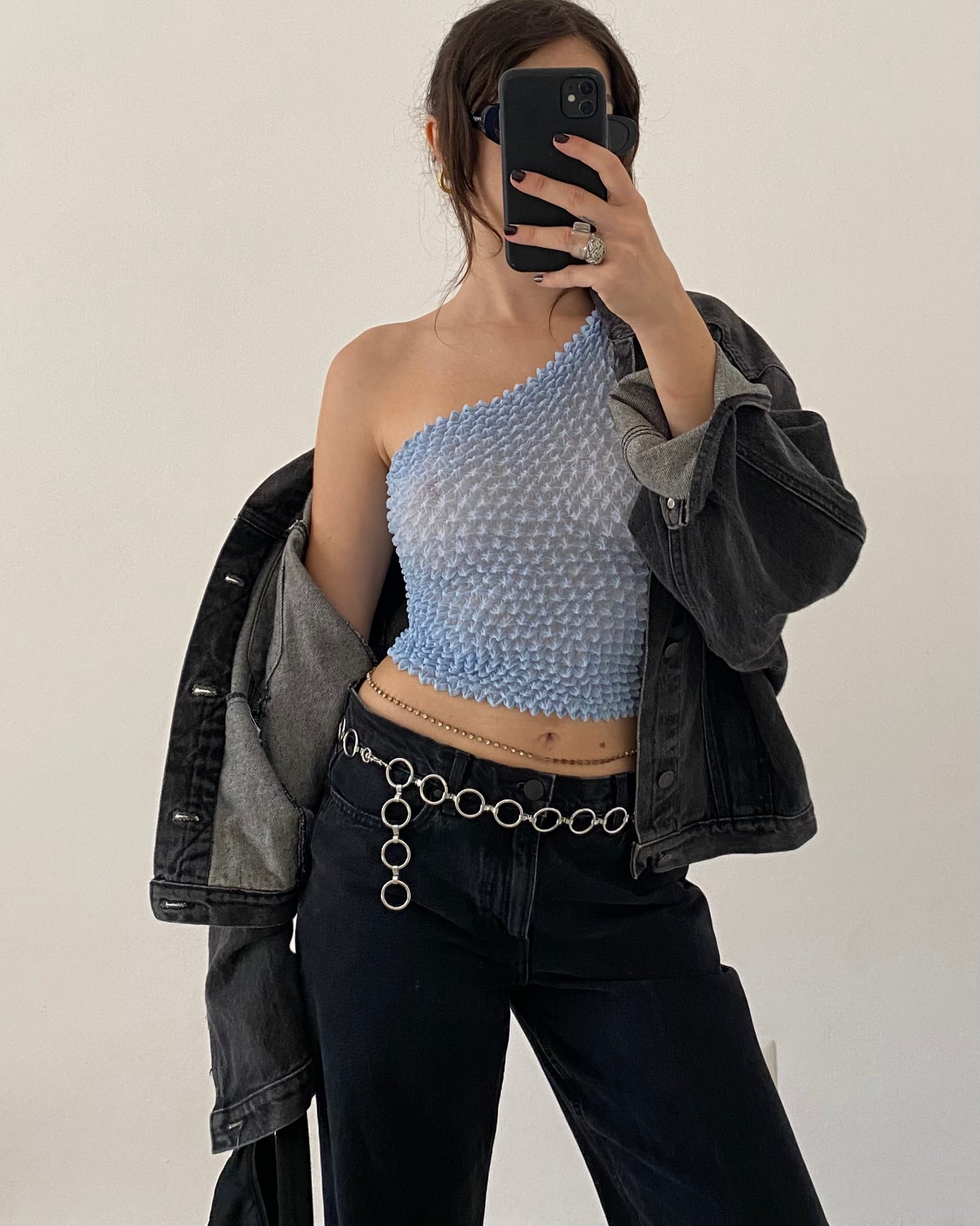 Meraviglioso top monospalle pop corn anni 90, tessuto super elasticizzato che si espande, stupendo <3