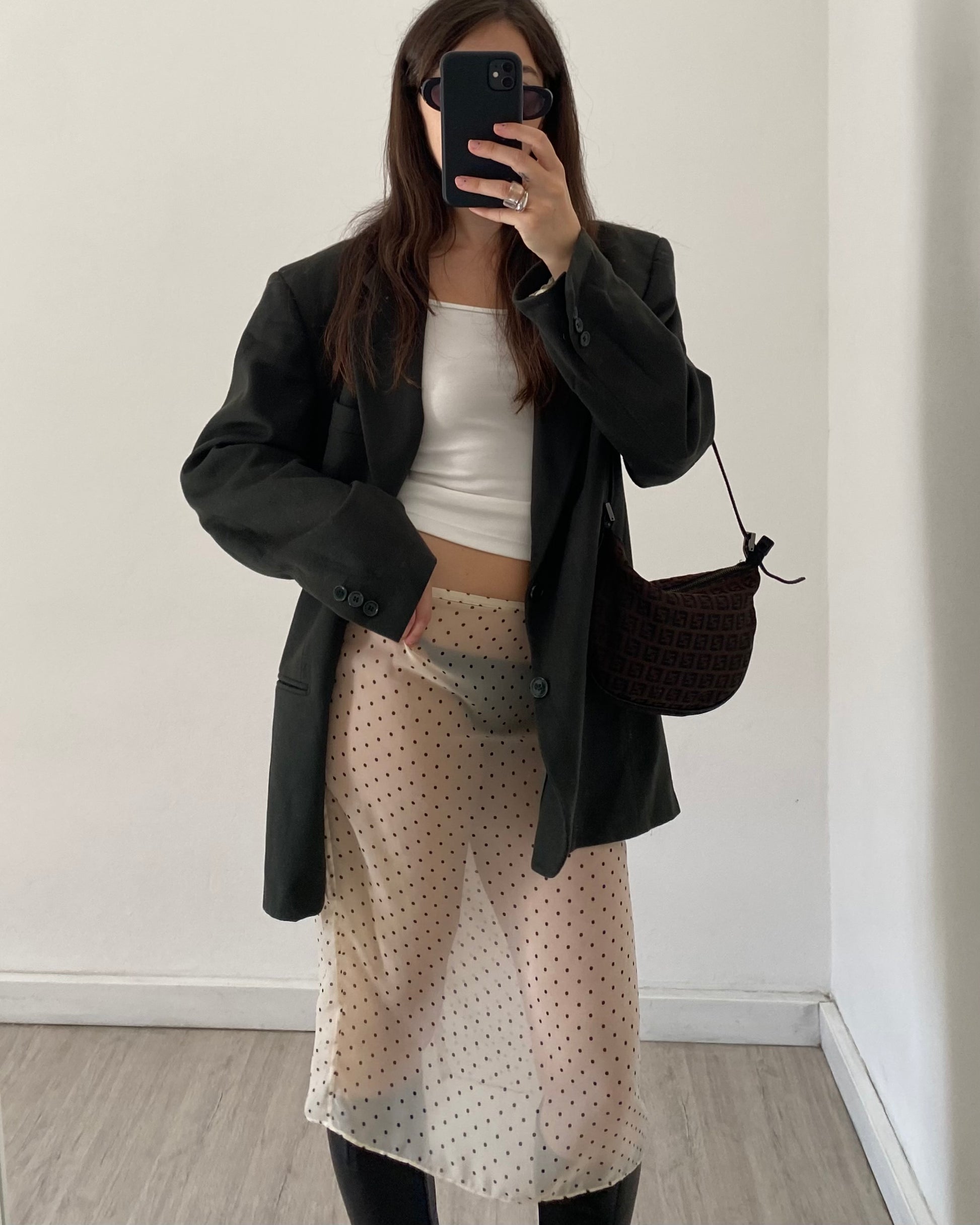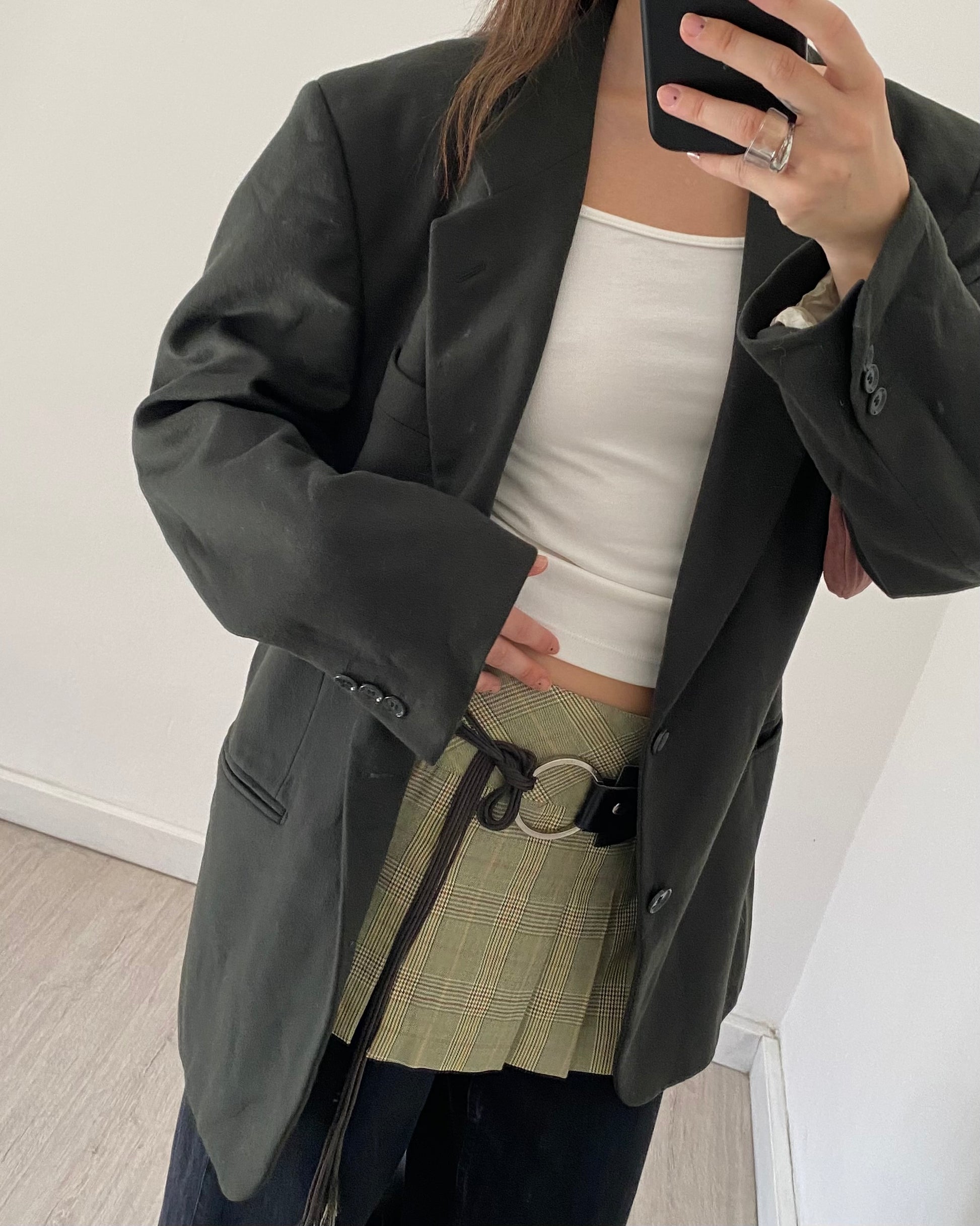 Meraviglioso blazer vintage in misto cashmere, pezzo sartoriale by Luca Alteri, fodera interna in seta. Fit perfetto, leggermente strutturato ma non rigido (o con spallone giganti), tessuto morbidissimo e caldo, dal tocco vellutato e non pruriginoso, ottima fattura. Colore: verde scuro tendente al cachi, grande classico che va con tutto.
