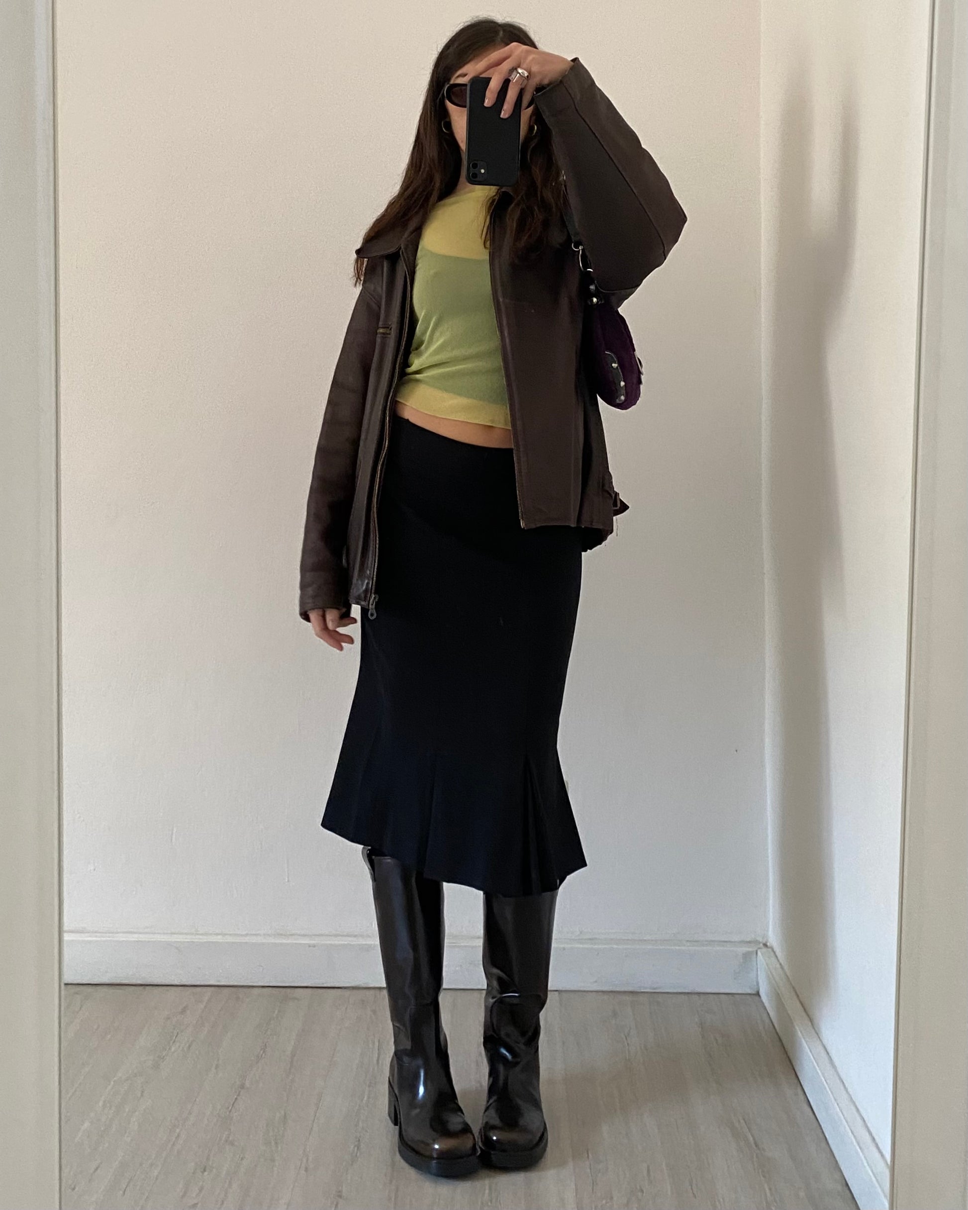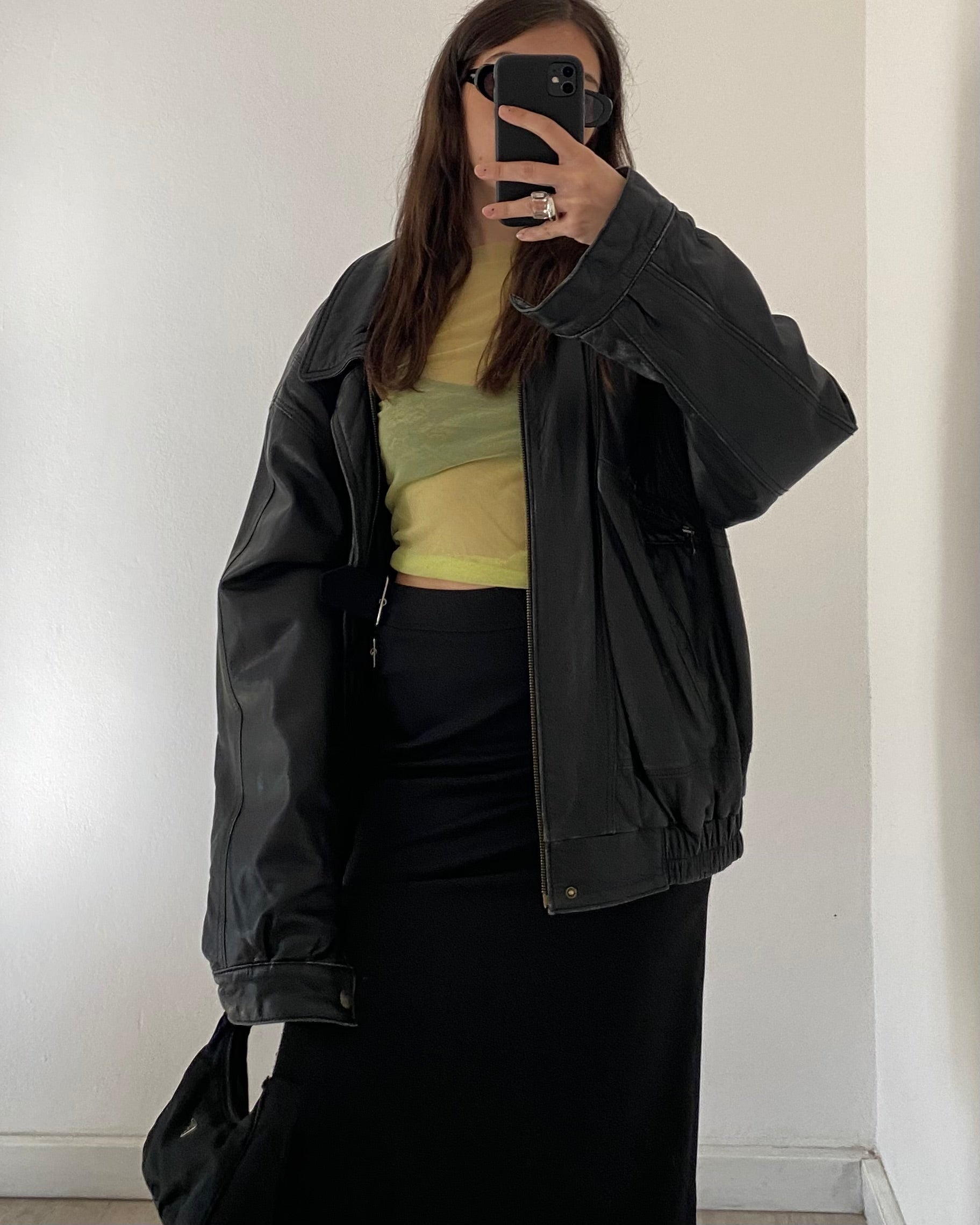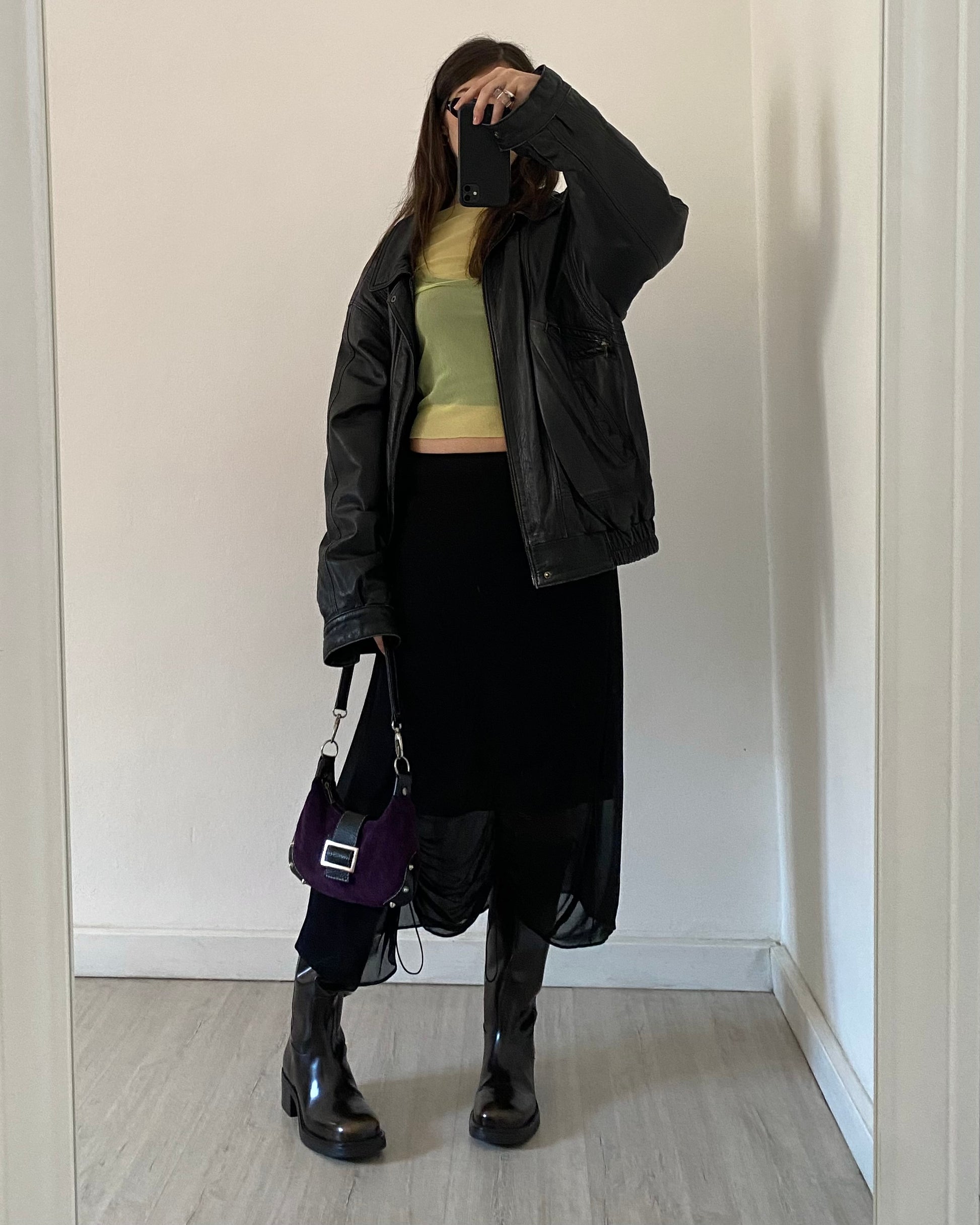 Top primi anni 2000 in micro mesh trasparente, maniche lunghe, tessuto stretch, bellissimo color lime.