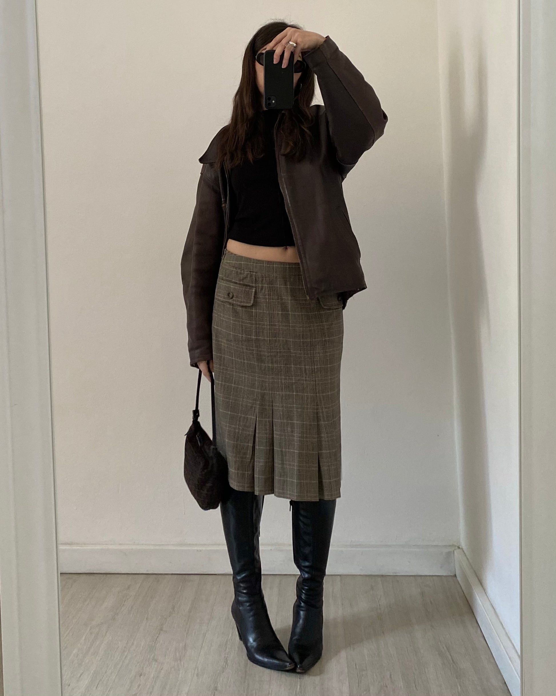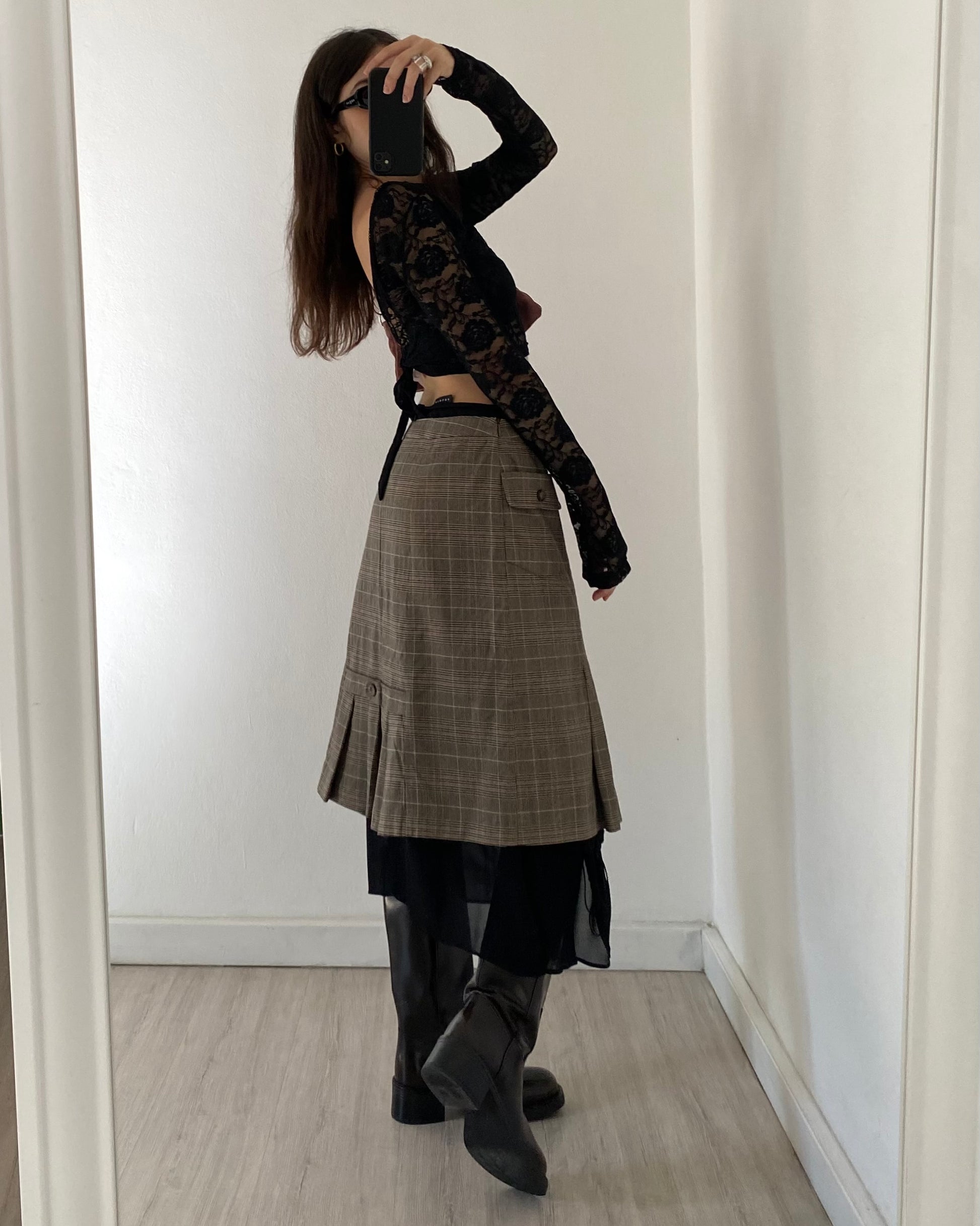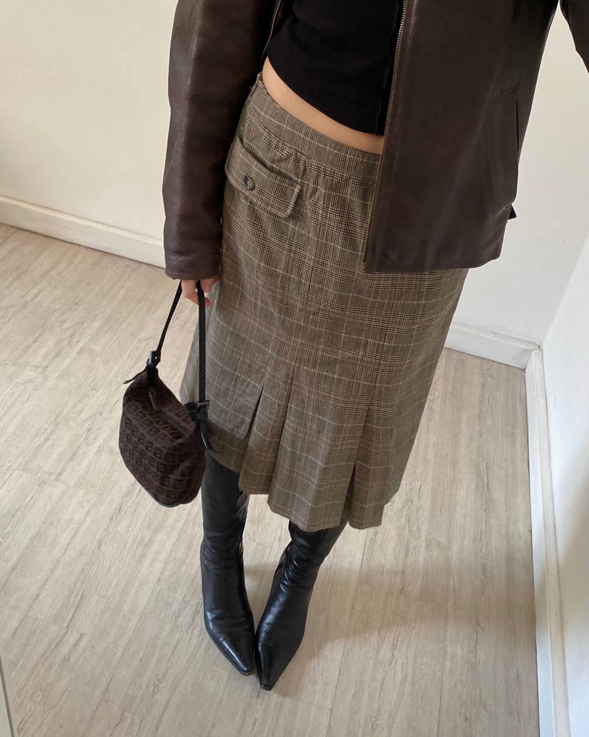 Meravigliosa gonna midi in misto lana by MaxMara, taglio dritto e leggermente svasato con pieghe laterali, motivo tweed a quadri (trend del momento!) che sta veramente bene con TUTTO, vita media, chiusura con zip laterale. Superfluo dire che la qualità del tessuto e la vestibilità sono incredibili. Lana non pruriginosa, calda e avvolgente <3