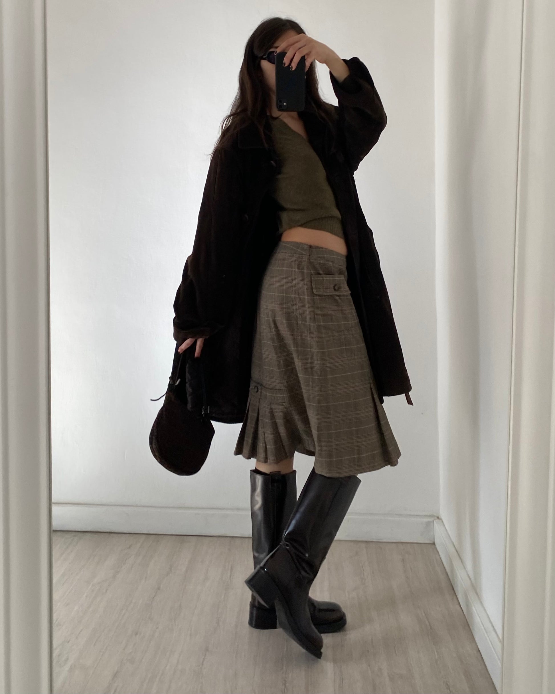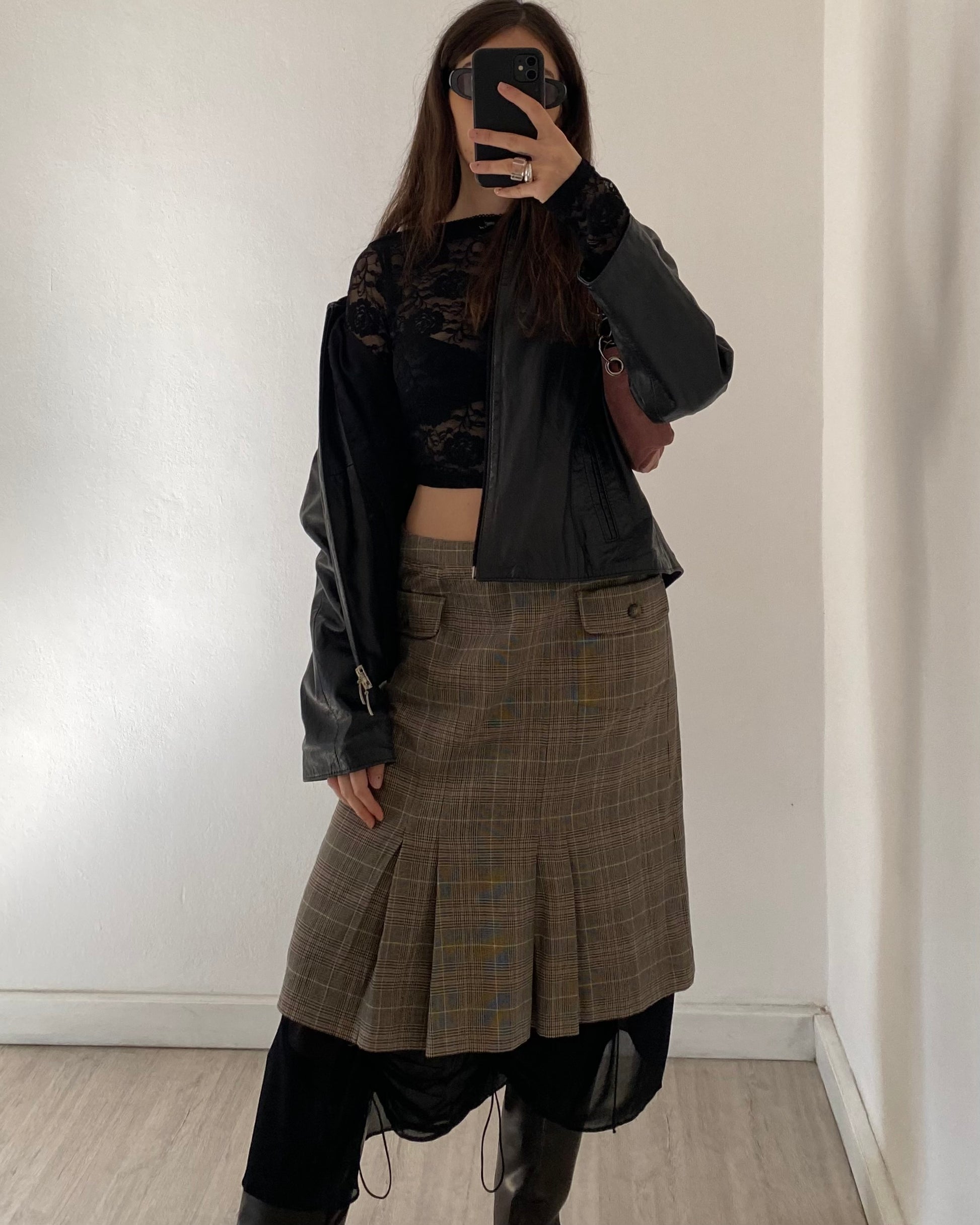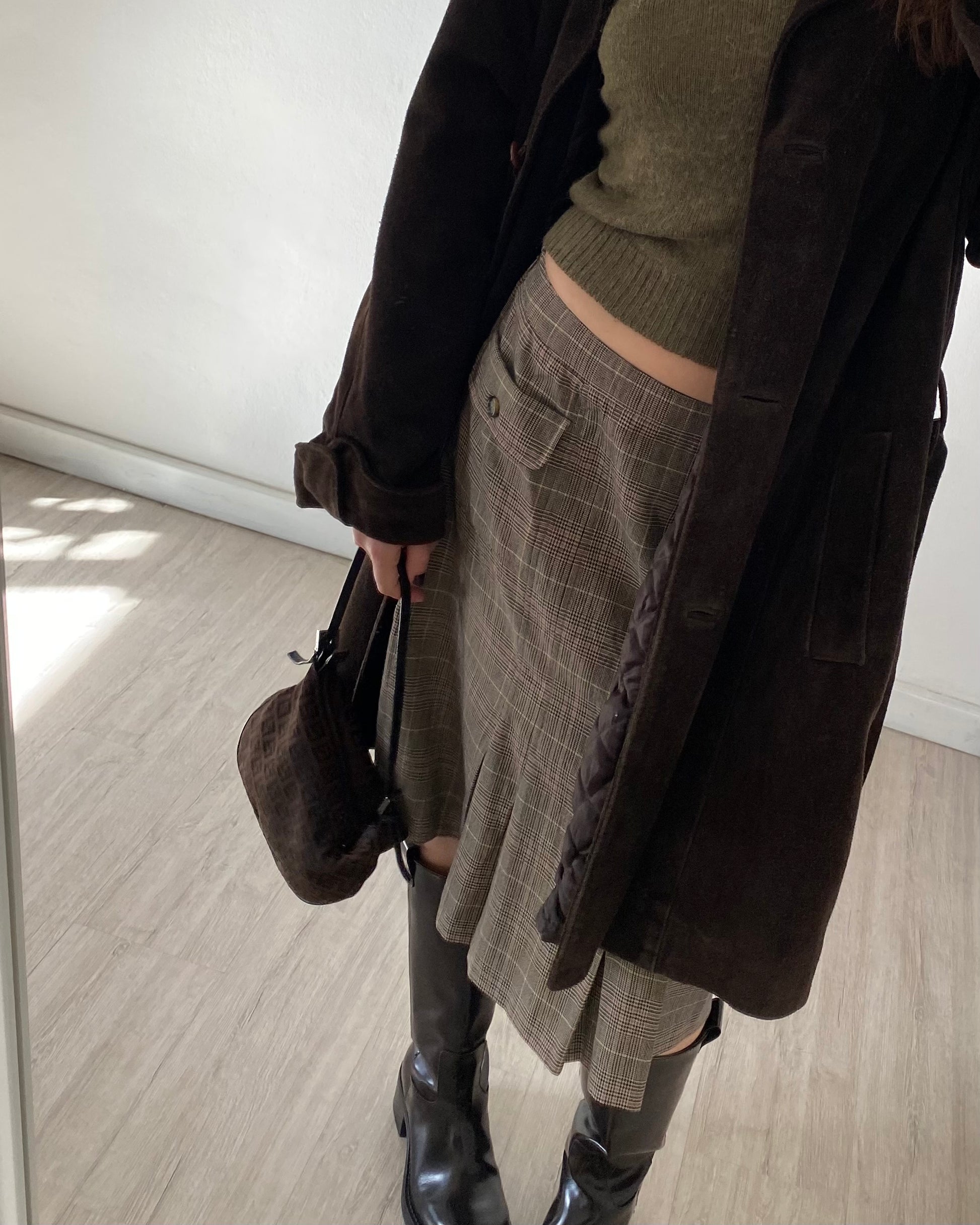 Meravigliosa gonna midi in misto lana by MaxMara, taglio dritto e leggermente svasato con pieghe laterali, motivo tweed a quadri (trend del momento!) che sta veramente bene con TUTTO, vita media, chiusura con zip laterale. Superfluo dire che la qualità del tessuto e la vestibilità sono incredibili. Lana non pruriginosa, calda e avvolgente <3