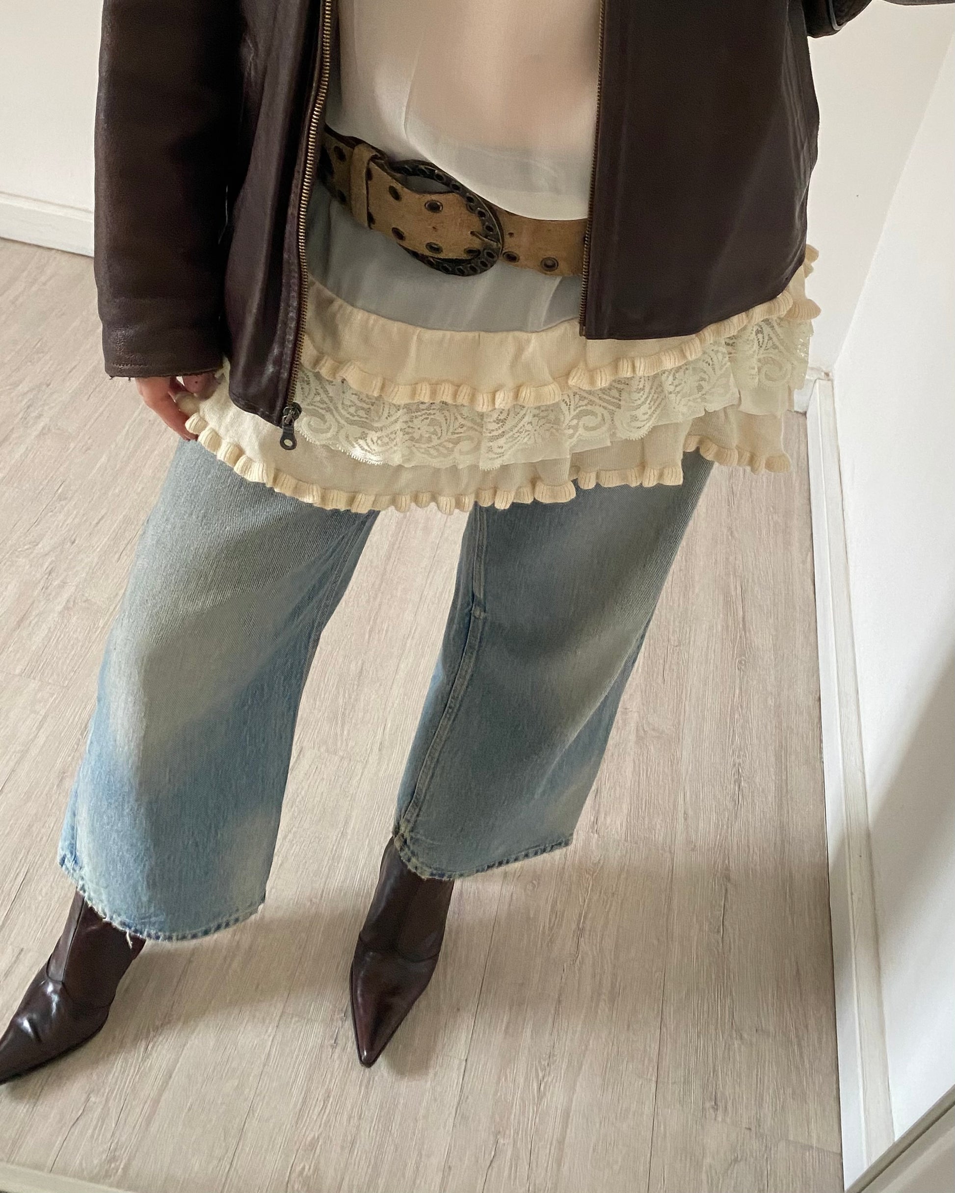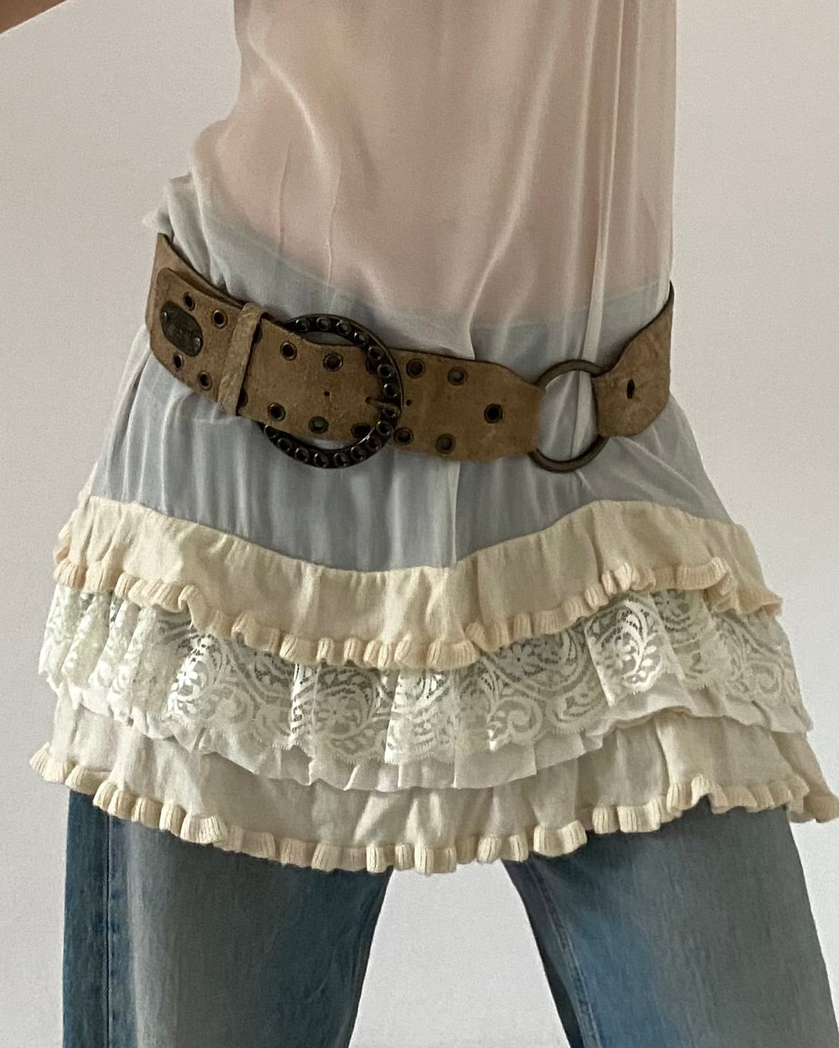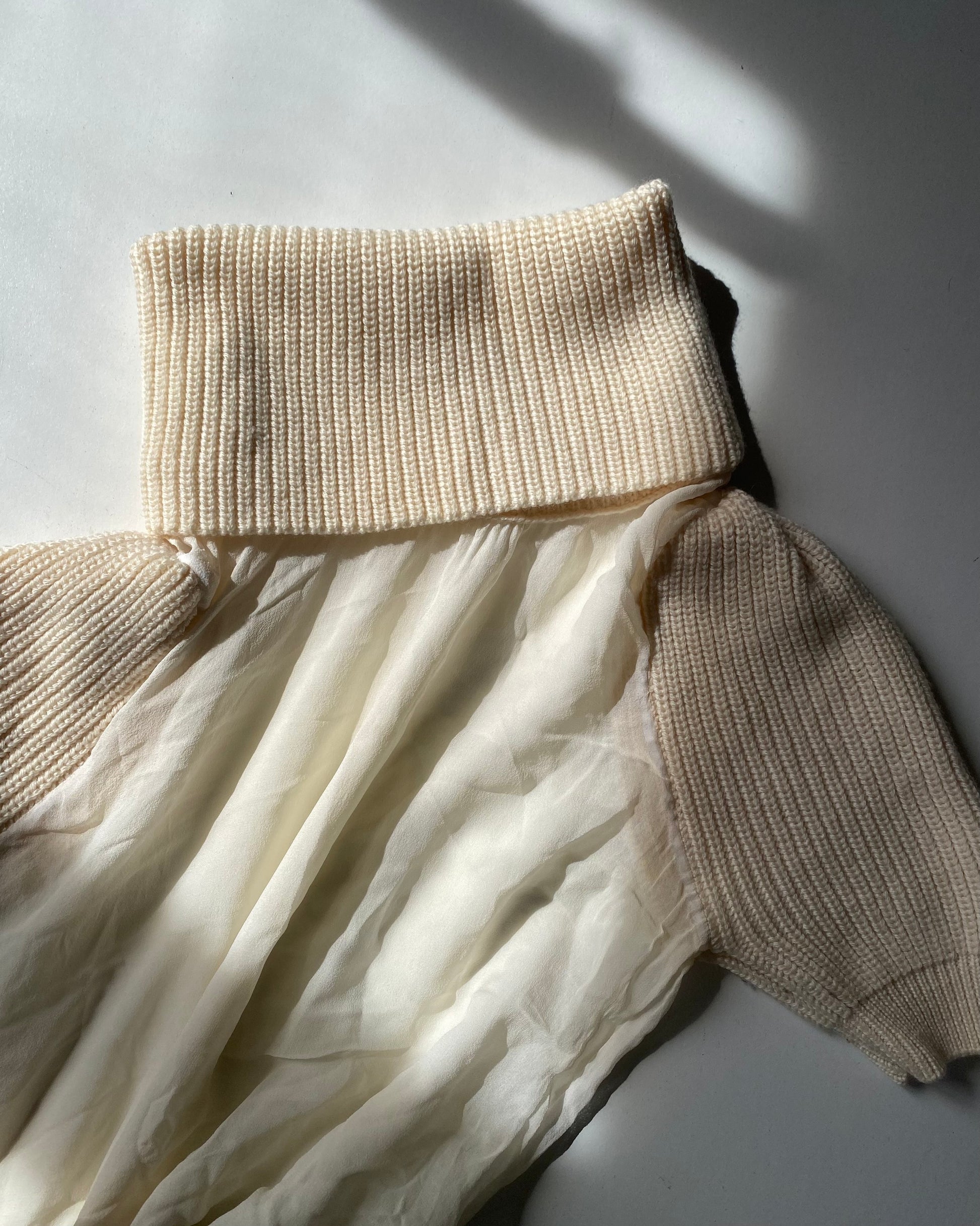 Meraviglioso mini abito ani 2000 in chiffon trasparente con collo alto e dettagli in maglia, micro volants con ricami e pizzo. Unico <3