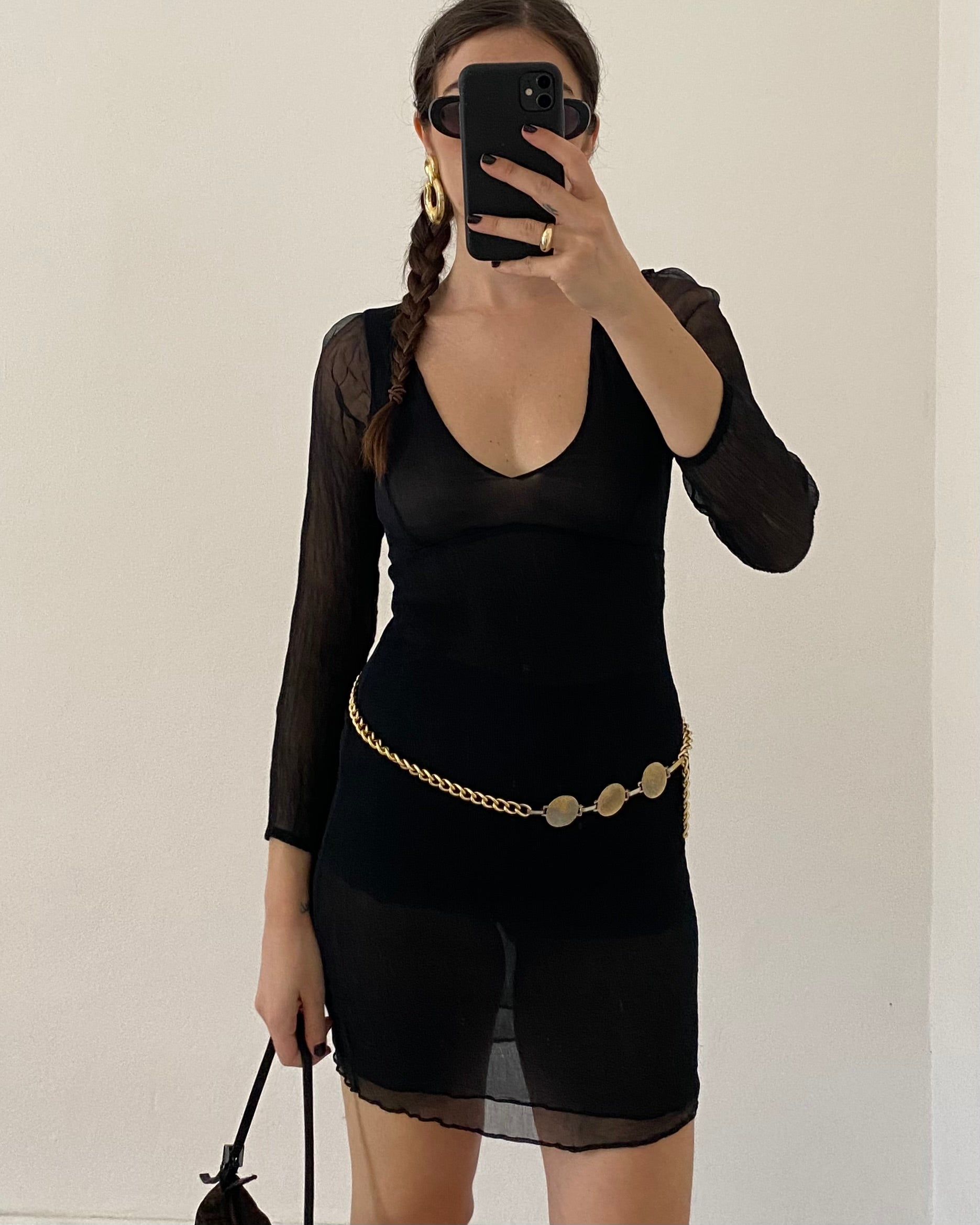 Meraviglioso mini abito prrimi anni 2000 in seta con ricami e mini paillettes, morbida fodera interna.