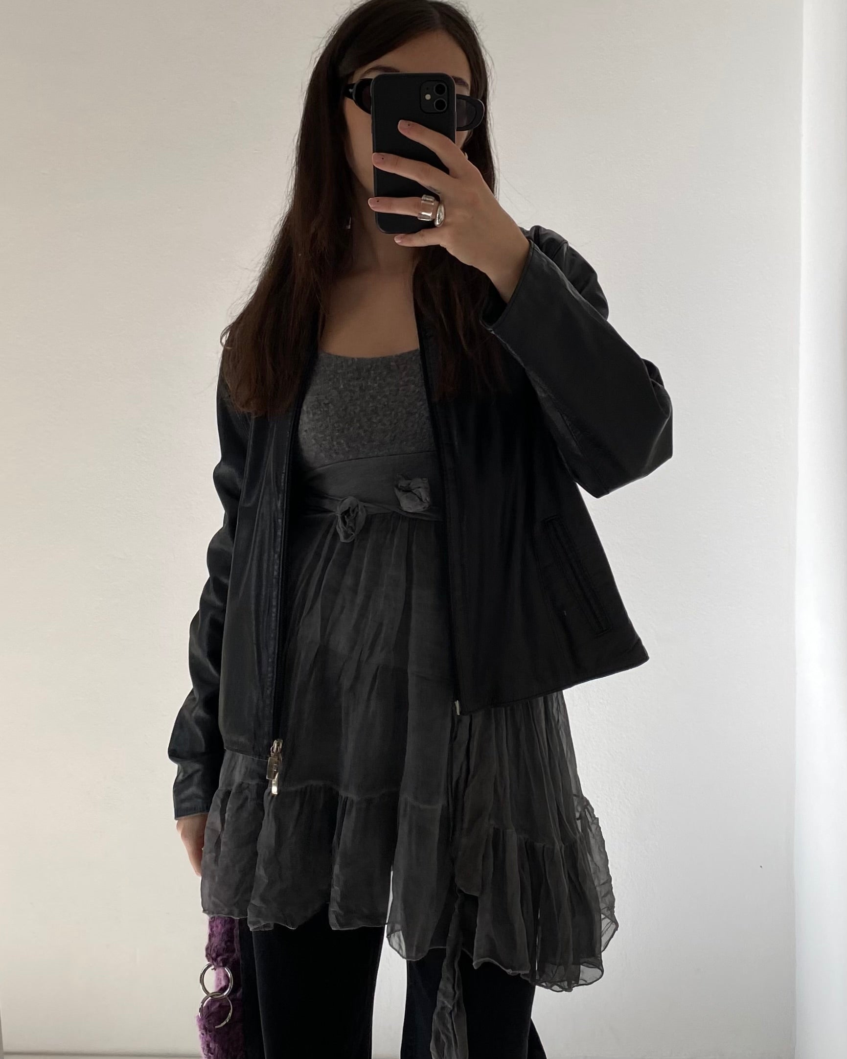 Meraviglioso mini abito anni 2000 in misto mohair e seta, spalline regolabili, cintura con dettagli rosa, corpetto in maglia morbida misto mohair e gonna a balze e volants in pura seta. Stupendo da indossare come mini dress con un blazer o come top lungo per giocare con le sovrapposizioni.
