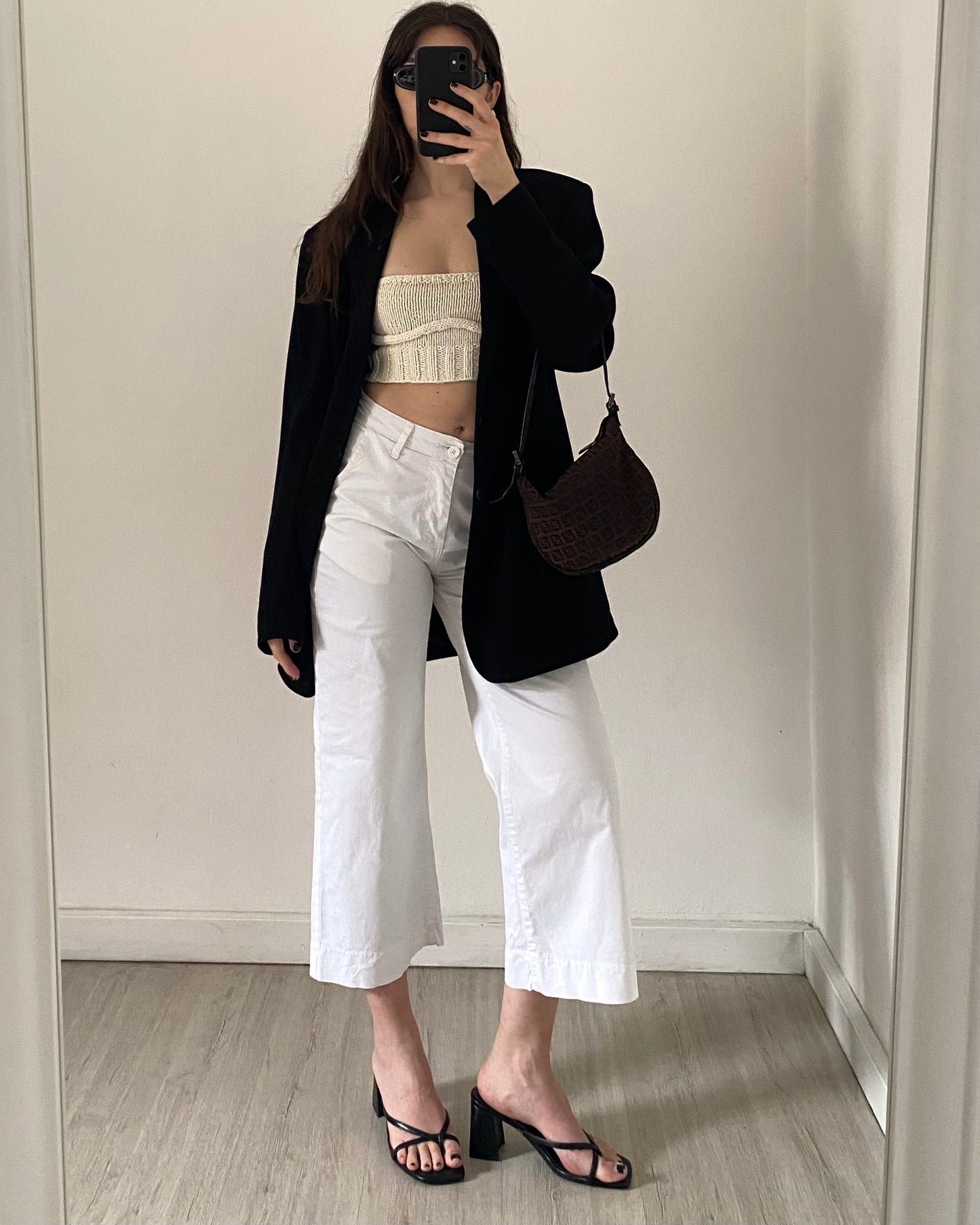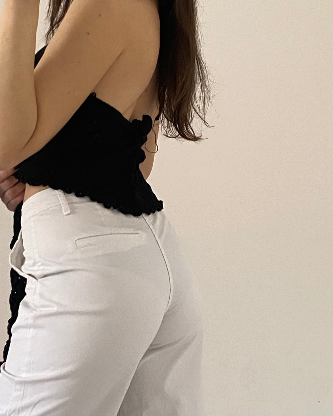 Pantaloni capri bianchi anni 2000, vita media, gamba dritta, lunghezza cropped, tela morbida e leggermente elasticizzata (non rigida), perfetta per l'estate!