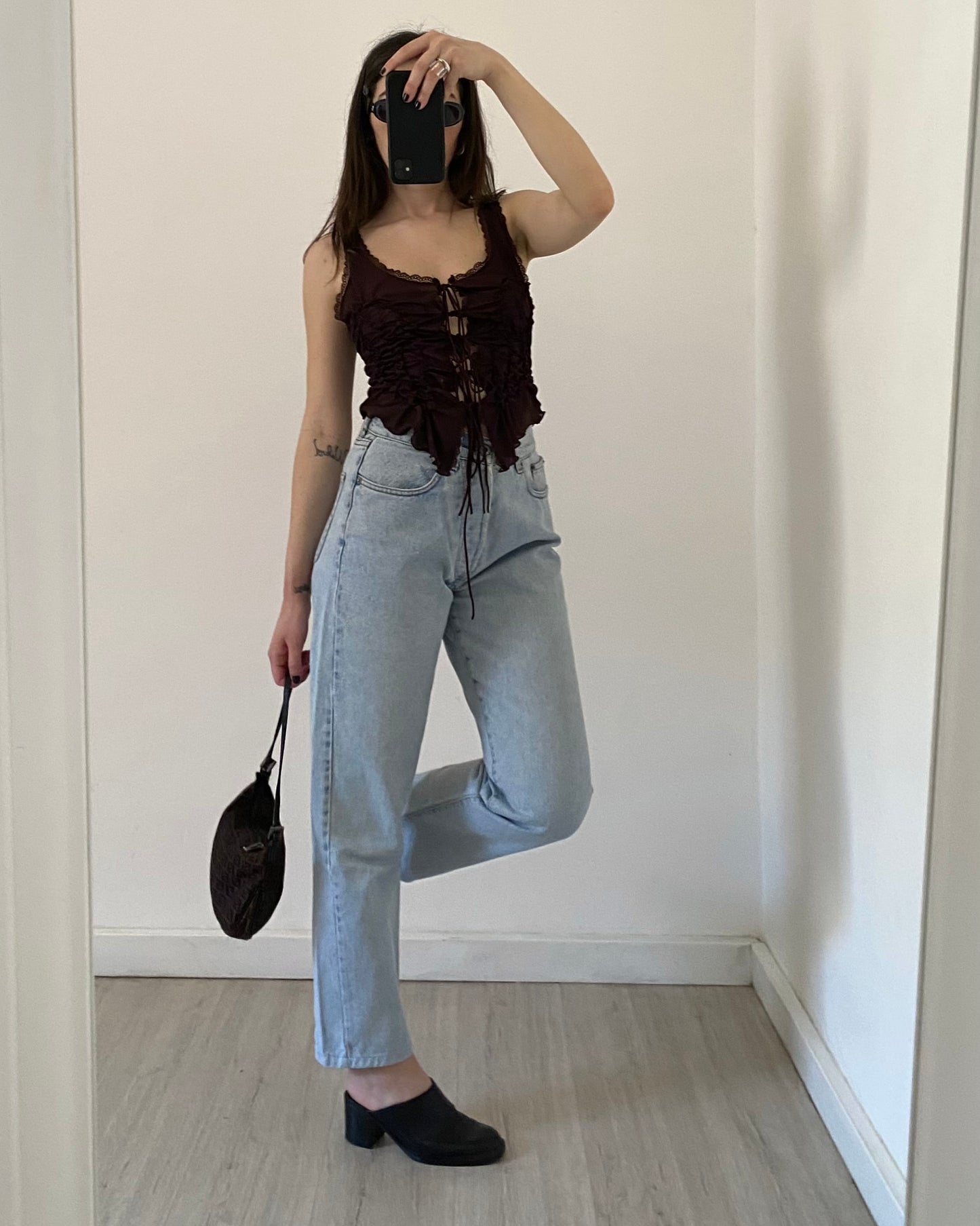 Meravigliosi jeans anni 90 con gamba dritta, vita medio-alta, chiusura con bottoni, lavaggio stupendo, tela strutturata ma non rigida, qualità del denim fantastica.