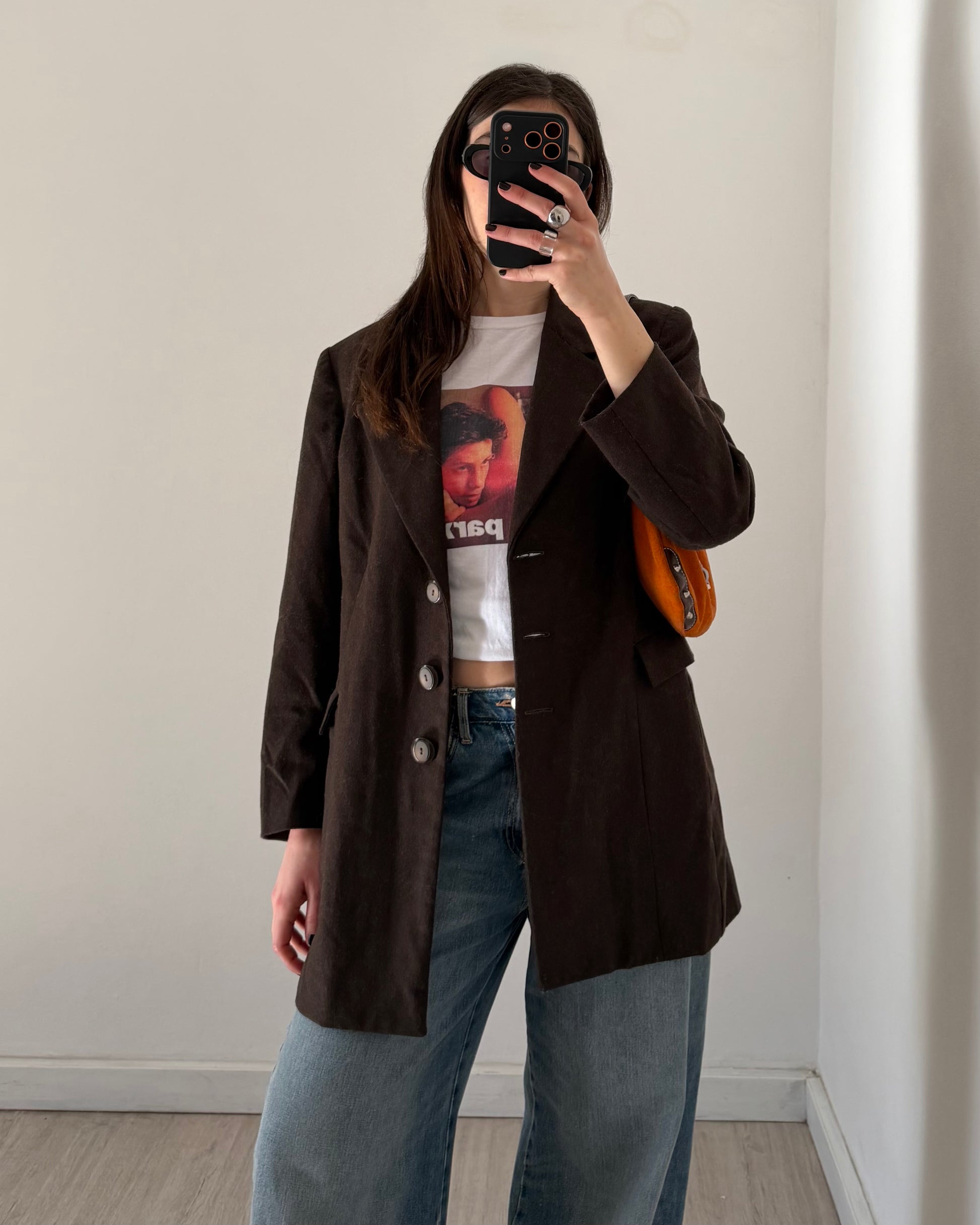 Blazer in fresco lana marrone scuro, fodera interna, taglio dritto e lungo. Super versatile, perfetto per la primavera.